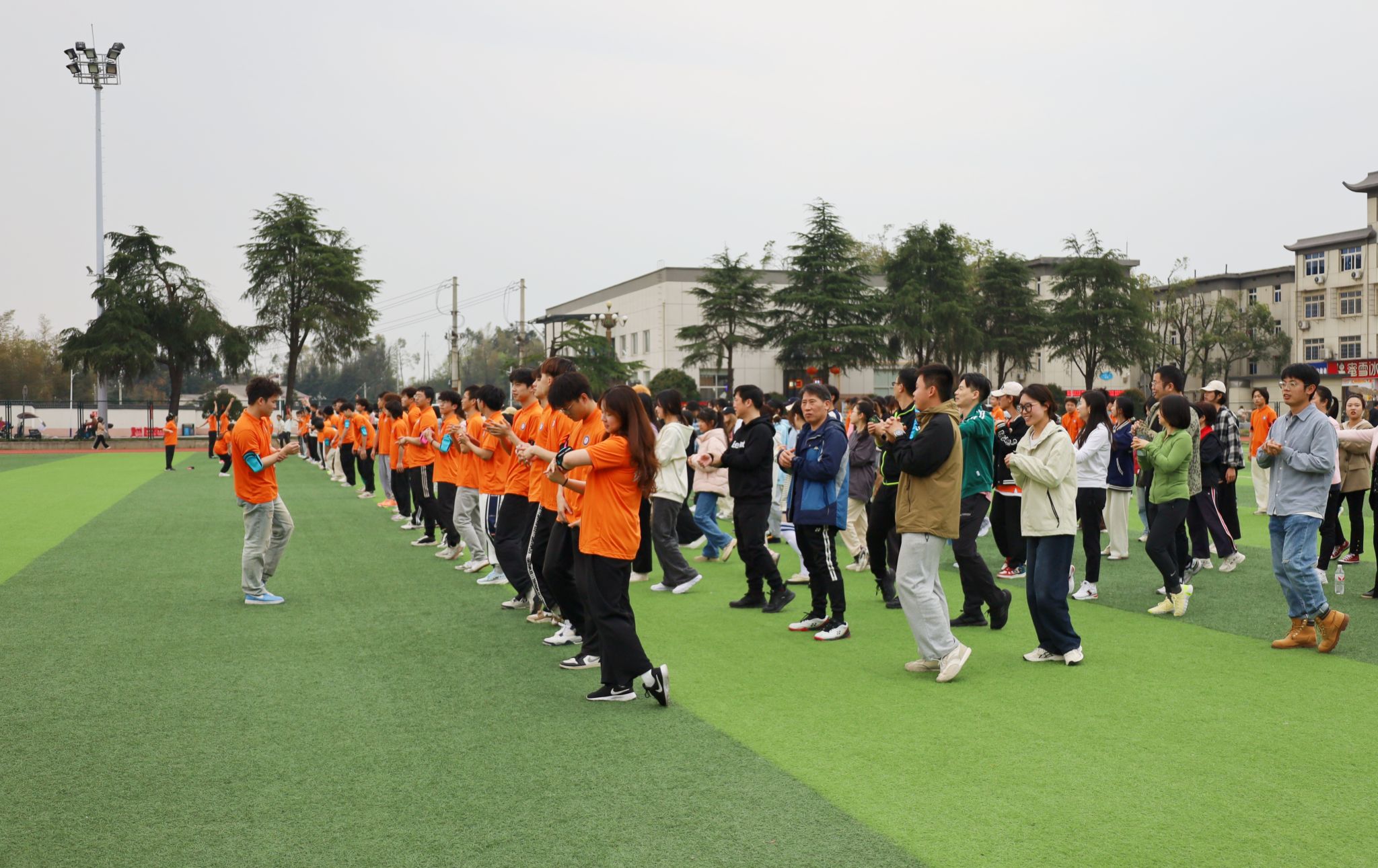 师生跑前热身运动 陈媛媛/摄