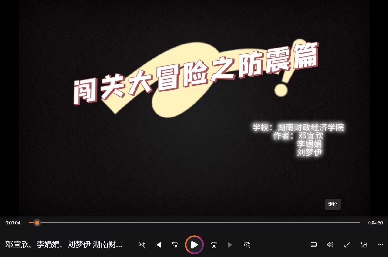 本届大赛以“防震减灾 科普先行”为主题,由湖南省地震局、湖南省教育厅、共青团湖南省委主办,湖南省地震局信息中心、湖南省地震学会承办。我校团委按照有关通知要求,组织学生参与比赛,共选送160份作品,其中,平面类作品50份、微视频类作品28份、讲解文案类作品82份。