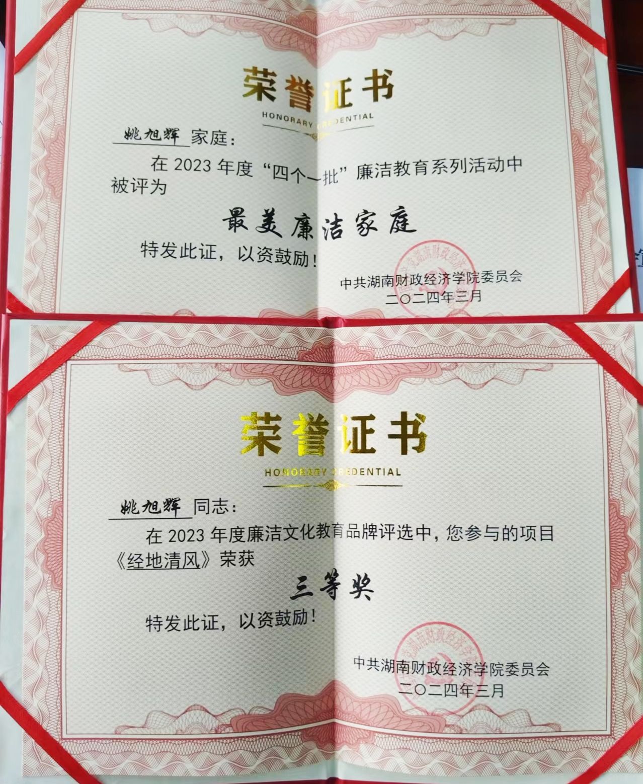 编者按:为弘扬和践行社会主义核心价值观,培树清廉典型,推动建设以清为美、以廉为荣的清廉生态,自2023年11月以来,全校开展“四个一批”廉洁教育系列活动。经自主申报、民主推荐、审核评选,最终确定姚旭辉家庭、欧阳海峰家庭为2023年度学校“最美清廉家庭”。在全党开展党纪学习教育之际,党委宣传部组织学生记者对获奖家庭进行了专访,讲好身边廉洁故事,传播湖财廉洁之声。
