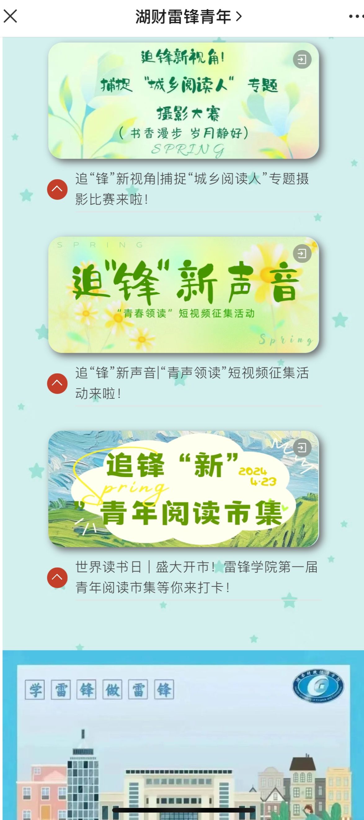 围绕雷锋精神校园文化品牌活动体系,组织了“拾读雷锋故事,争做雷锋青年”雷锋日记评选、“歌声传唱学雷锋”校园快闪活动、“追锋新青年,建功新时代”主题演讲比赛、“校园百公里跑”等活动,寓教育于校园文化活动中,以活动助推学风建设。