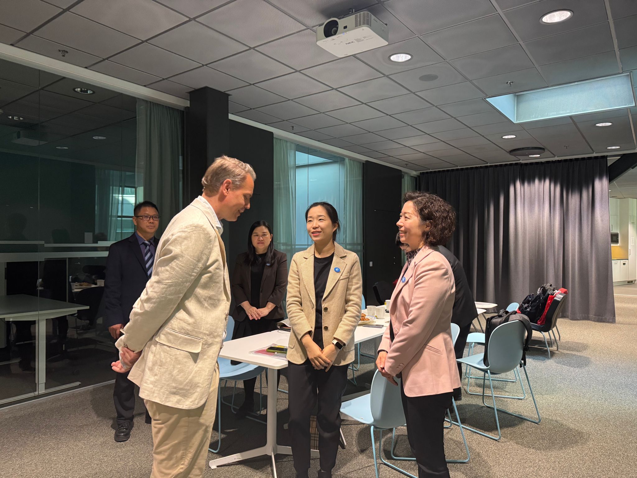 22日,代表团参观走访了位于斯德哥尔摩郊区的西斯塔科学城,科学城国际事务部总经理Mr. Marco Giertz热情接待代表团一行。西斯塔科学城是瑞典信息与通信技术产业集群,汇聚了爱立信、华为、三星、ABB等行业巨头,同时孵化了Minecraft、Spotify、Klarna等独角兽公司。代表团先后参观了研发中心、游戏实验室、生活交流区,在座谈中了解到,科学城以科创融合、产学研协同创新为特色,企业以项目委托形式吸引大学助力,学生参与或承担企业研发项目获得学制上的支持,成果和红利共享,同时,政府在创业基金和知识产权方面为创新创业提供保障。双方就大学生创新创业、教师科研成果转化、企业订制化人才培养模式等问题进行了深入洽谈。