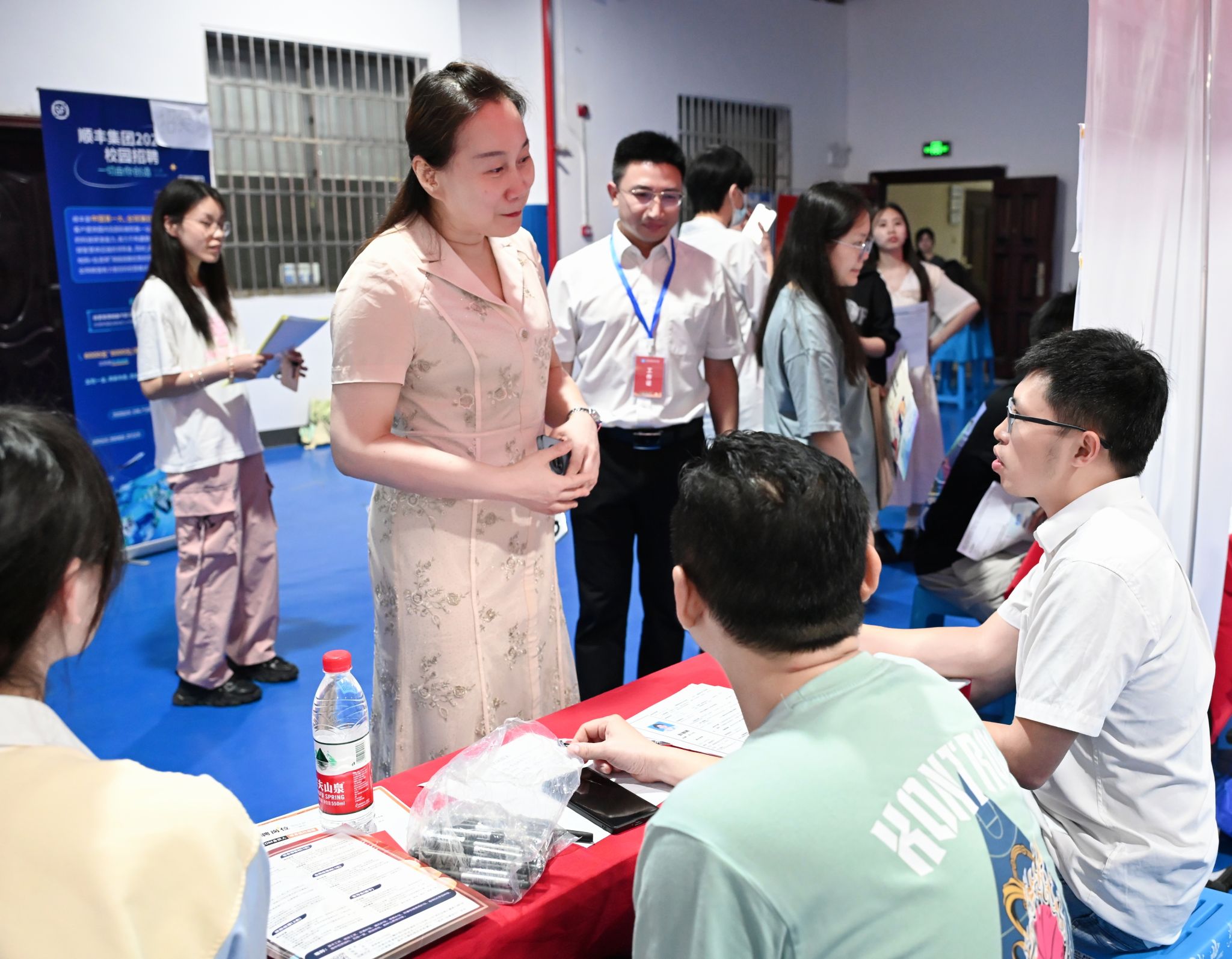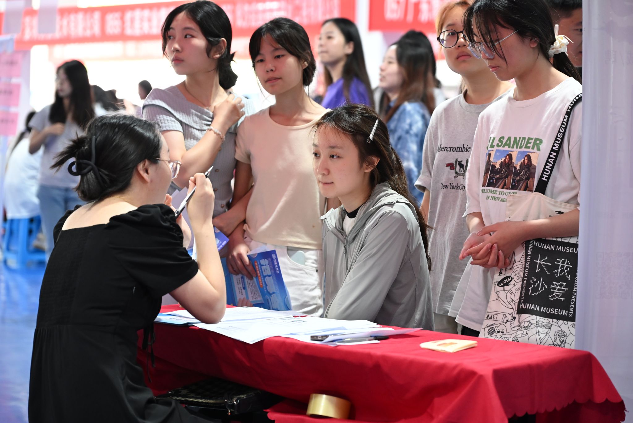 招聘会现场,用人单位依次排开,招聘涵盖多个行业领域的优质就业职位15700余个。同学们手持简历,穿梭于各个企业展位之间,与招聘人员深入交流,或咨询岗位需求,或探讨职业发展,或了解企业文化。现场气氛热烈而有序,匆匆的脚步与专注的眼神,无不寄托着同学们对未来的期待和憧憬。咸嘉湖街道、岳麓山大科城有关负责人以及校内相关部门、二级学院主要负责人、相关工作人员在现场为学生提供政策解读、就业指导、法律咨询、简历打印、后勤保障等服务。