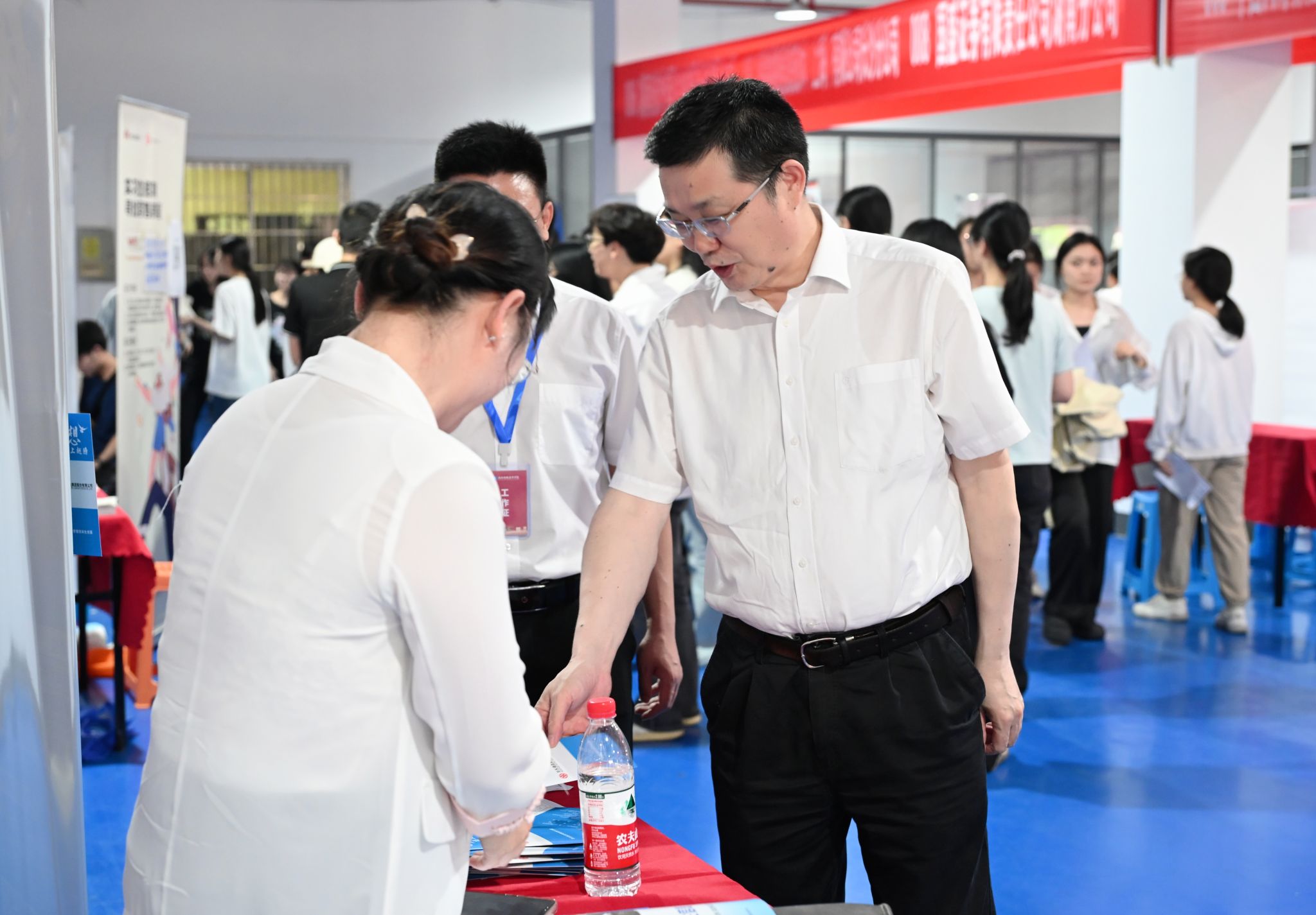 杨兰英、刘长庚、苏玲在就业创业中心负责人的陪同下先后来到现场调研指导工作,对企业来校选才表示热烈欢迎,希望与用人单位搭建沟通桥梁、促进人才供需对接,携手推进毕业生充分高质量就业;与参会学生亲切交谈、解答就业疑惑,鼓励学生认真准备、积极行动,争取早日顺利就业。