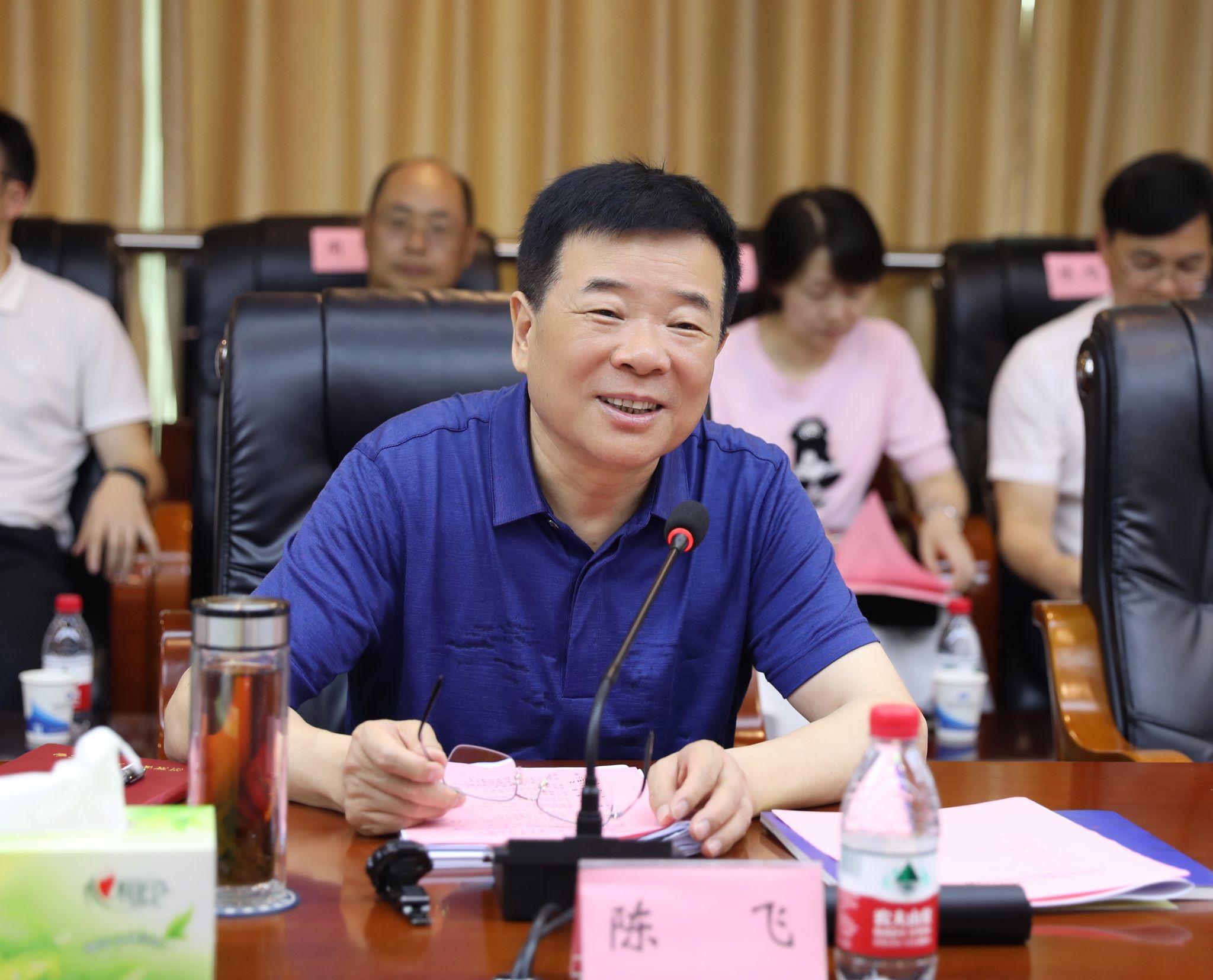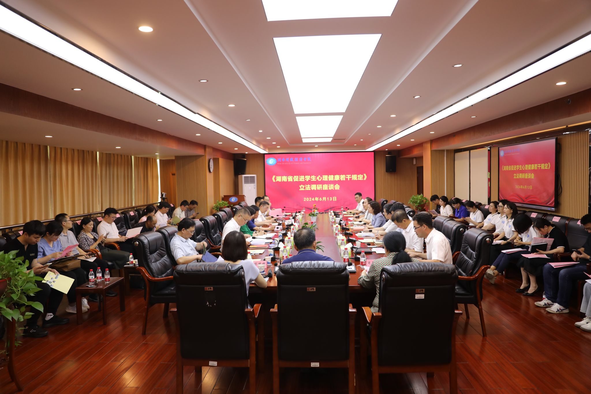 (本网讯)6月13日下午,省人大常委会副主任陈飞率队来校开展制订《湖南省促进学生心理健康若干规定》立法调研。省人大常委会委员,教科文卫委分党组书记、副主任委员蒋祖烜;省人大常委会委员、教科文卫委副主任委员蒋昌忠;省人大教科文卫委副主任委员游克湘;省人大常委会法工委副主任卿晓英;省教育厅副厅长孙传贵;省卫健委副主任罗辉;省医保局副局长孙兆泉等领导、专家;世界杯官网党委书记杨兰英、校长刘长庚、党委副书记苏玲陪同调研或参与座谈。