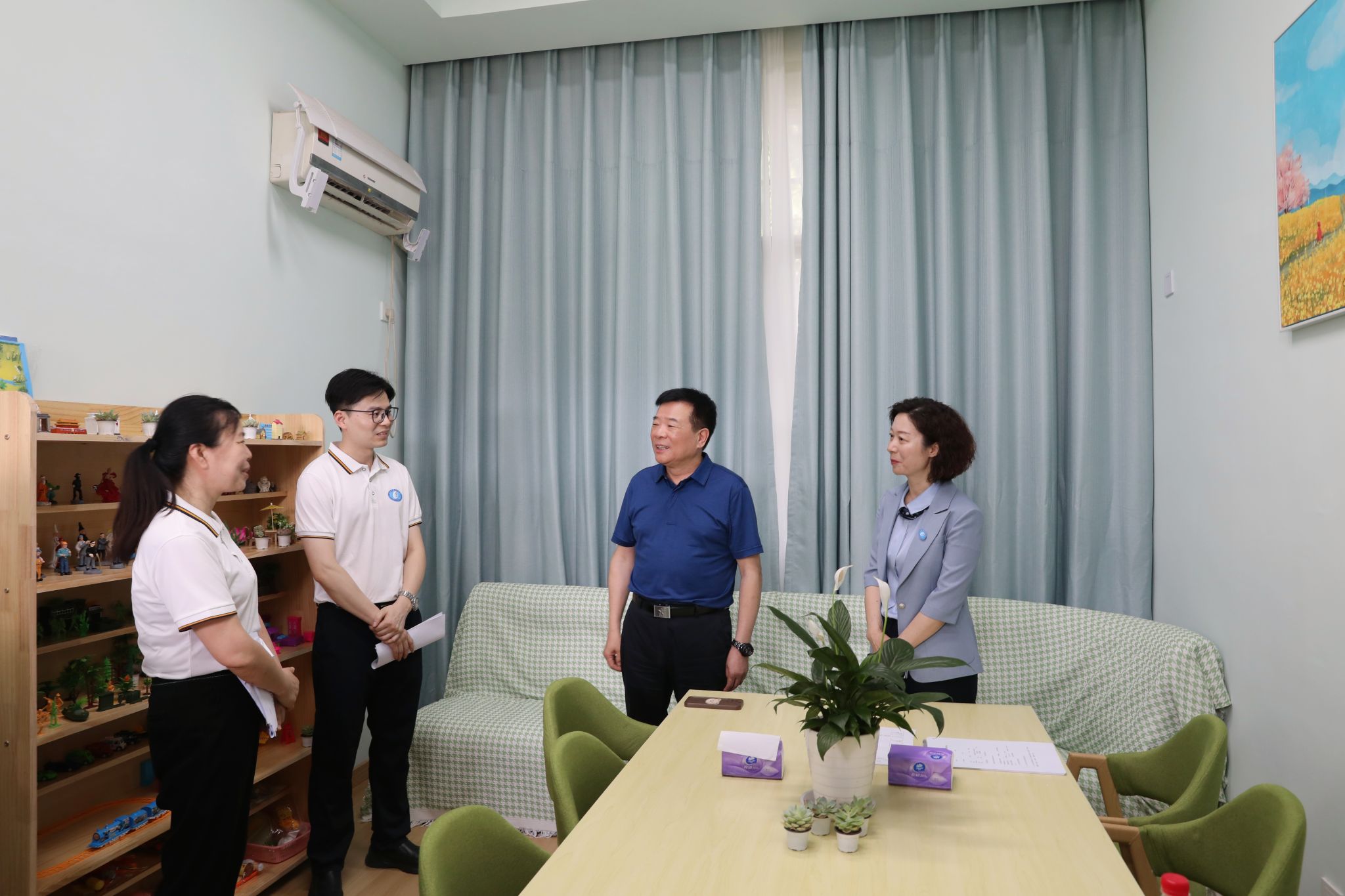 陈飞一行实地调研了世界杯官网大学生心理健康教育与咨询中心和就业创业中心,了解世界杯官网心理健康教育的工作基础、特色亮点和就业工作基本情况、就业困难群体帮扶举措以及所取得的成绩。