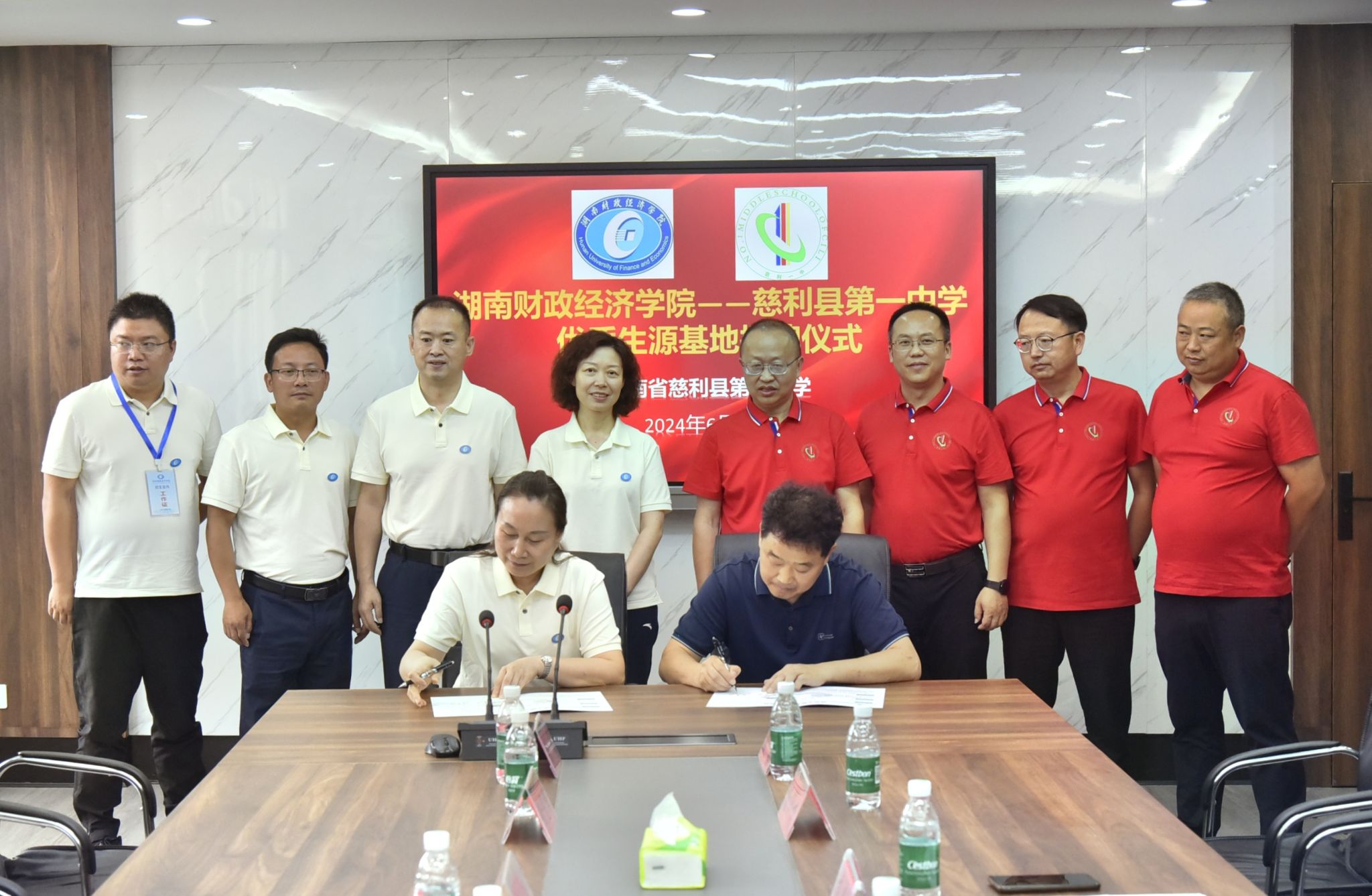 校党委副书记苏玲(前排左)与慈利县第一中学签订优质生源基地共建协议