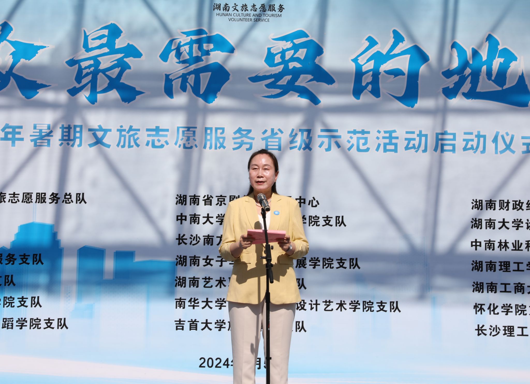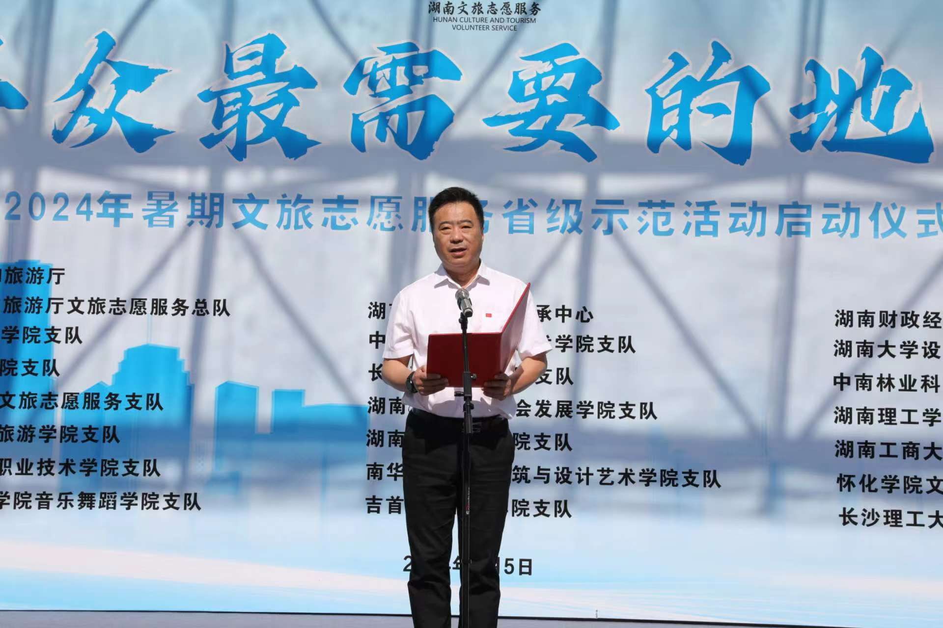 (本网讯)7月5日,由省文化和旅游厅举办的2024年“到群众最需要的地方去”为主题的暑期文旅志愿服务省级示范活动启动仪式在世界杯官网举行。省文旅厅党组成员、副厅长尚斌,世界杯官网党委副书记苏玲以及来自省内18所高校的250名文旅志愿者参加活动。