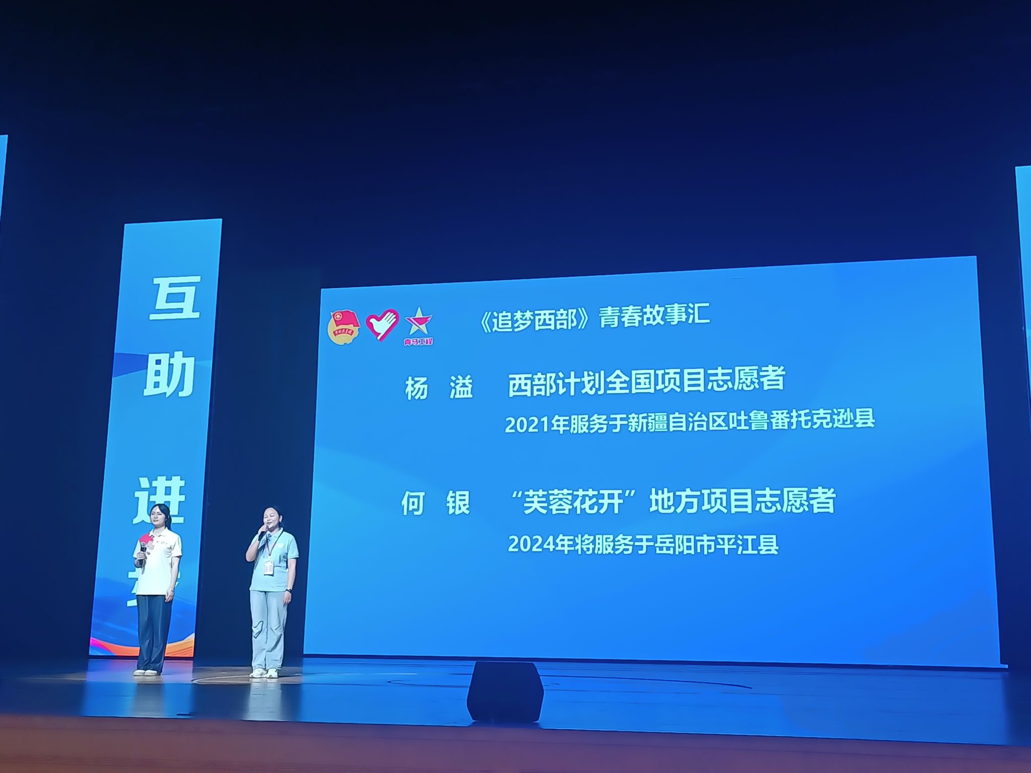 (本网讯)7月25日,在2024年湖南省大学生志愿服务西部计划出征仪式上,世界杯官网2021届毕业生杨溢和2024届毕业生何银作为志愿者代表分享了她们的青春故事。