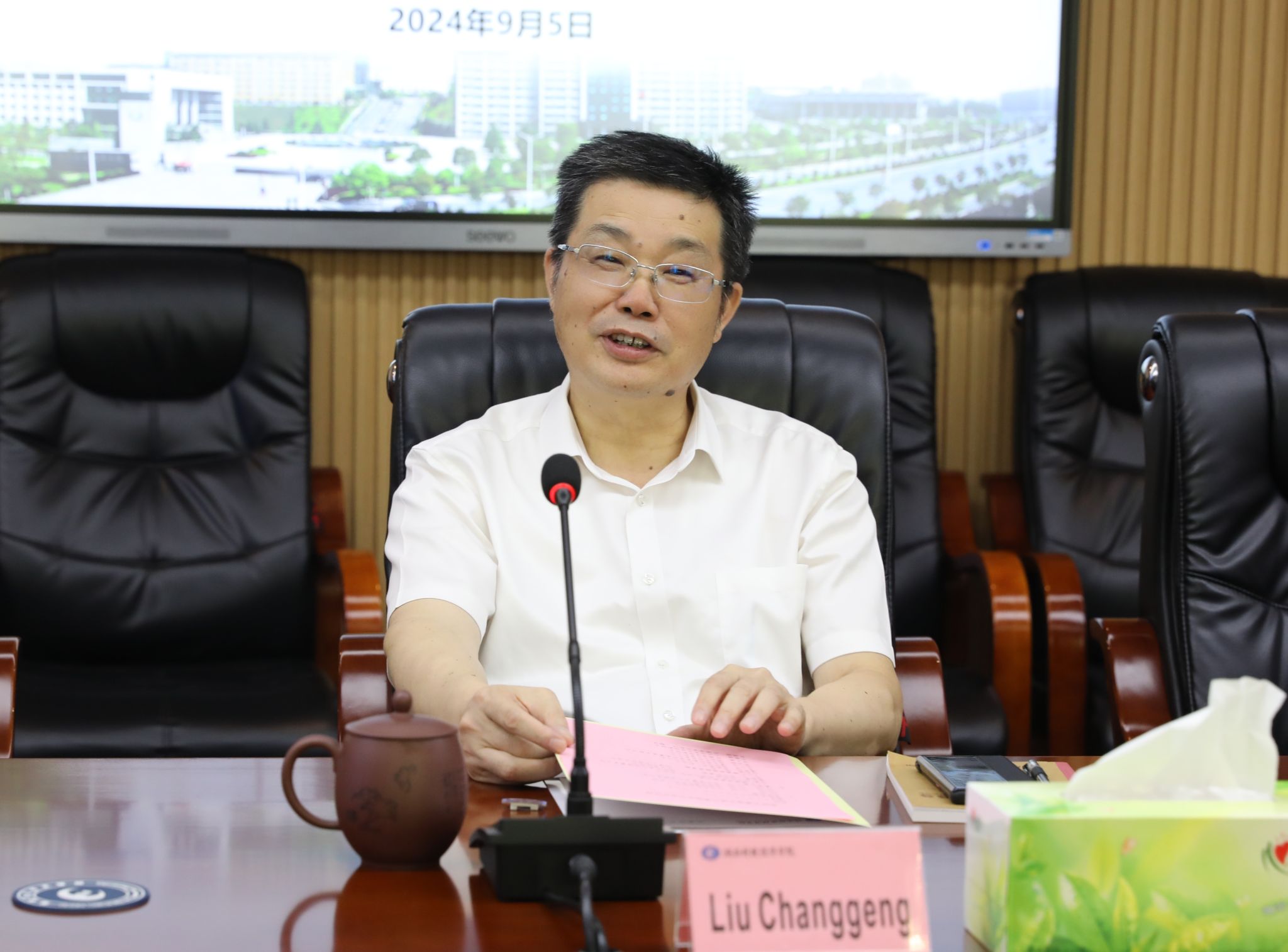 在与会人员的见证下,潘爱民代表学校与外方签署合作备忘录。