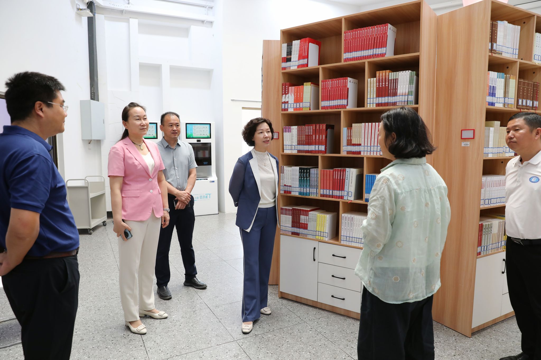 慰问期间,杨兰英、苏玲一行调研了雷锋书院后勤楼、总务楼及图书馆等场地建设和配套情况,并就有关问题提出指导意见。