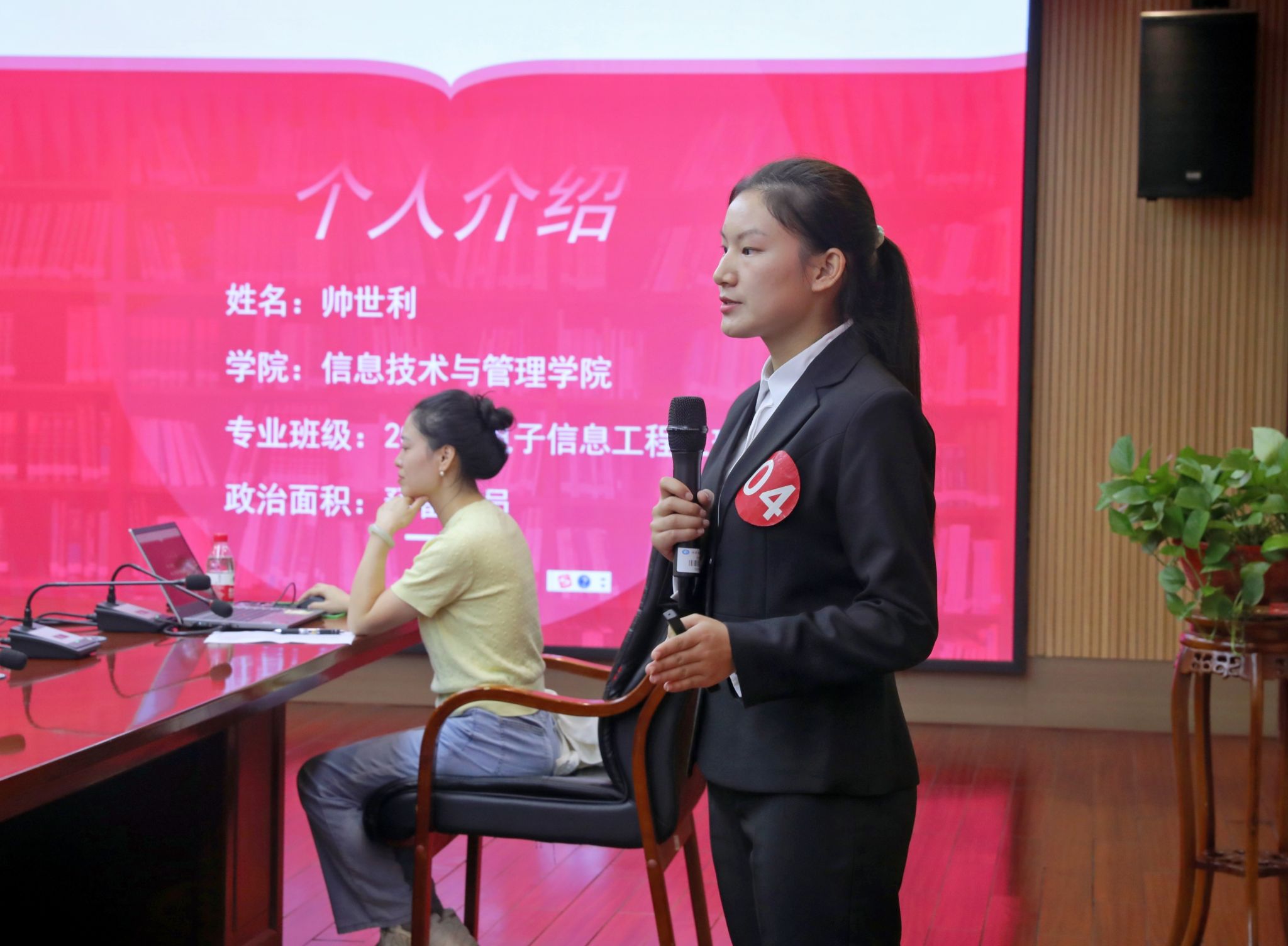 34名国家奖学金候选人依次陈述展示了各自在学业科研、社会实践、创新创业、志愿服务以及党团活动等领域所取得的成绩。