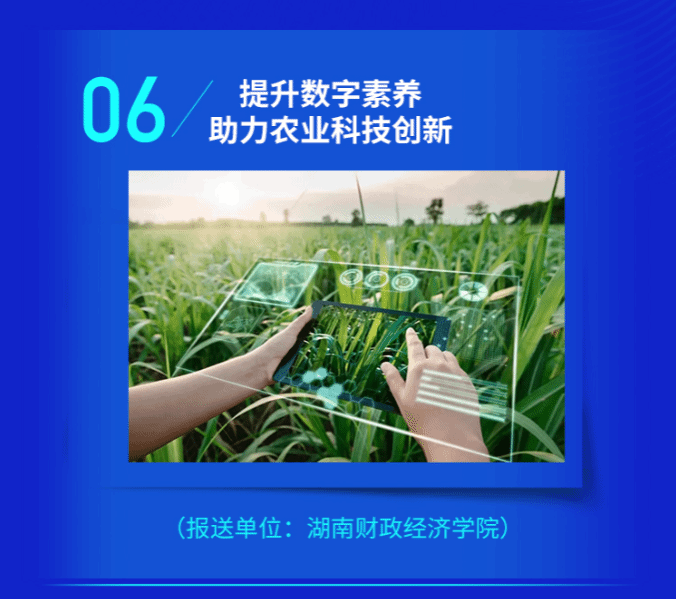 (本网讯)近日,湖南省提升全民数字素养与技能典型案例征集活动结果揭晓,世界杯官网推送的案例《提升数字素养,助力农业科技创新》入选数字创新类典型案例,该案例由财政金融学院李鑫老师撰写完成。