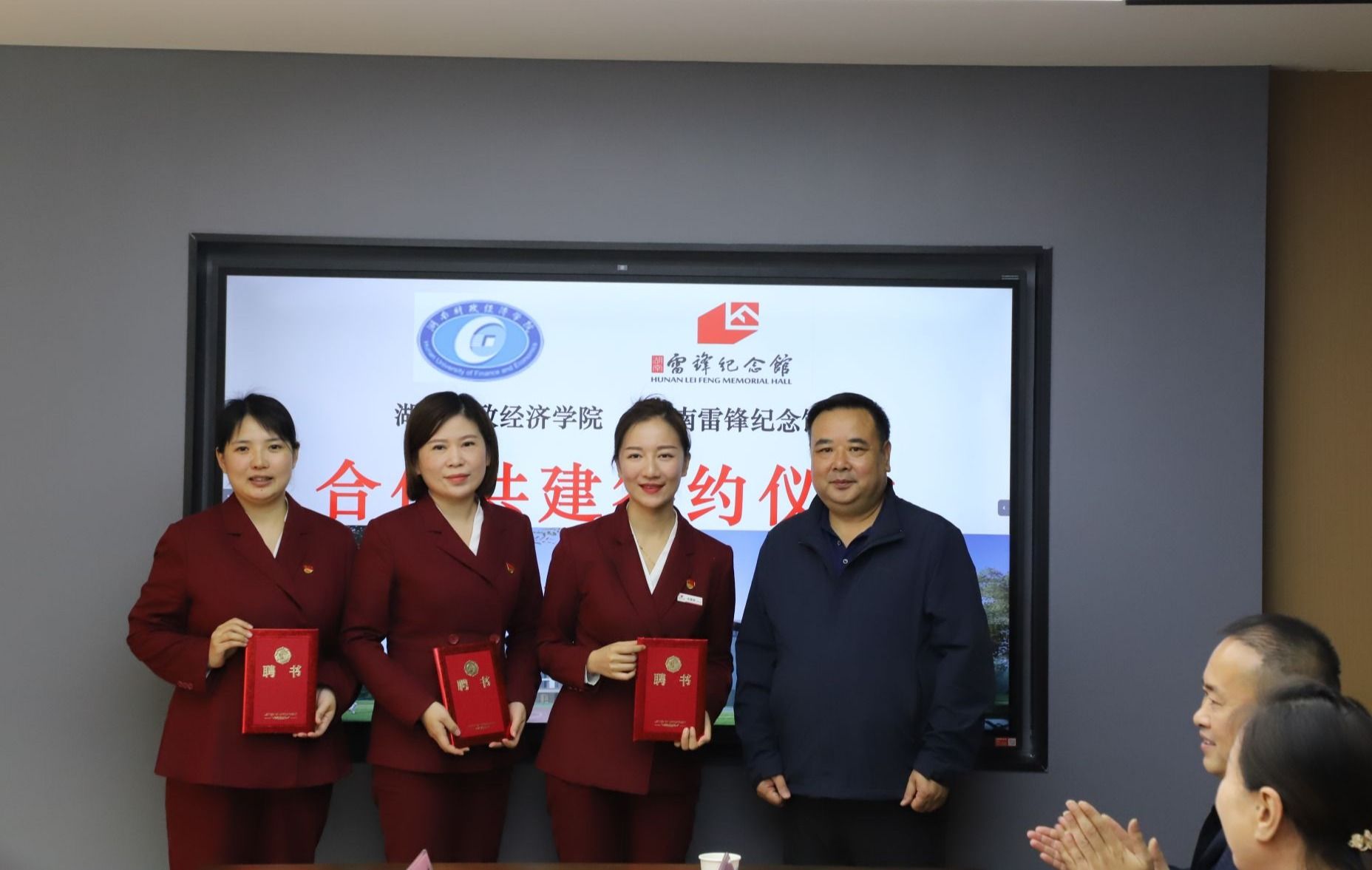 现场,雷锋书院常务副院长杨健代表学校向湖南雷锋纪念馆颁授了“共学共建实践教育基地”牌匾;邹文向学校颁授了“雷锋精神协同研究基地”牌匾;文炳勋为湖南雷锋纪念馆宣讲团成员张璐琪、肖婷、侯佳蕾颁发校外导师聘书。