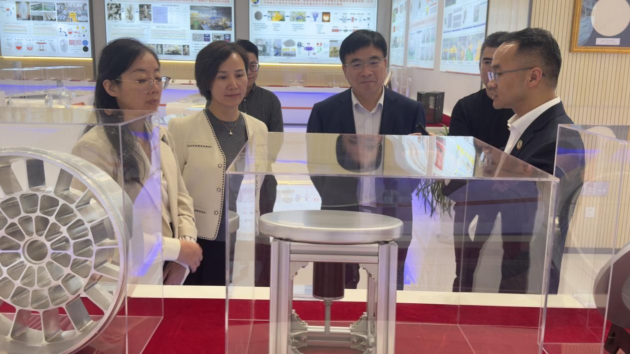 江丰电子材料有限公司是一家高科技上市公司,以超高纯溅射靶材研发著称,在全球半导体行业中具有行业领先地位,年产值超40亿元,发展潜力巨大。郭国强一行观看了“大国重器”企业专题纪录片,参观了公司产品展览厅和专利墙。在半导体靶材的介绍环节,随行人员近距离接触到了城市“智造”引擎。江丰电子由海归博士创立,他们怀揣打破国外技术垄断、填补国内空白的初心,历经重重困难,最终凭借匠心打磨出“大国重器”,荣获国家技术发明二等奖。郭国强对江丰电子的奋斗历程和取得的成就表示钦佩,并希望双方能够进一步加强校企合作,提高毕业生就业质量,开展科研合作,促进科技成果转化。