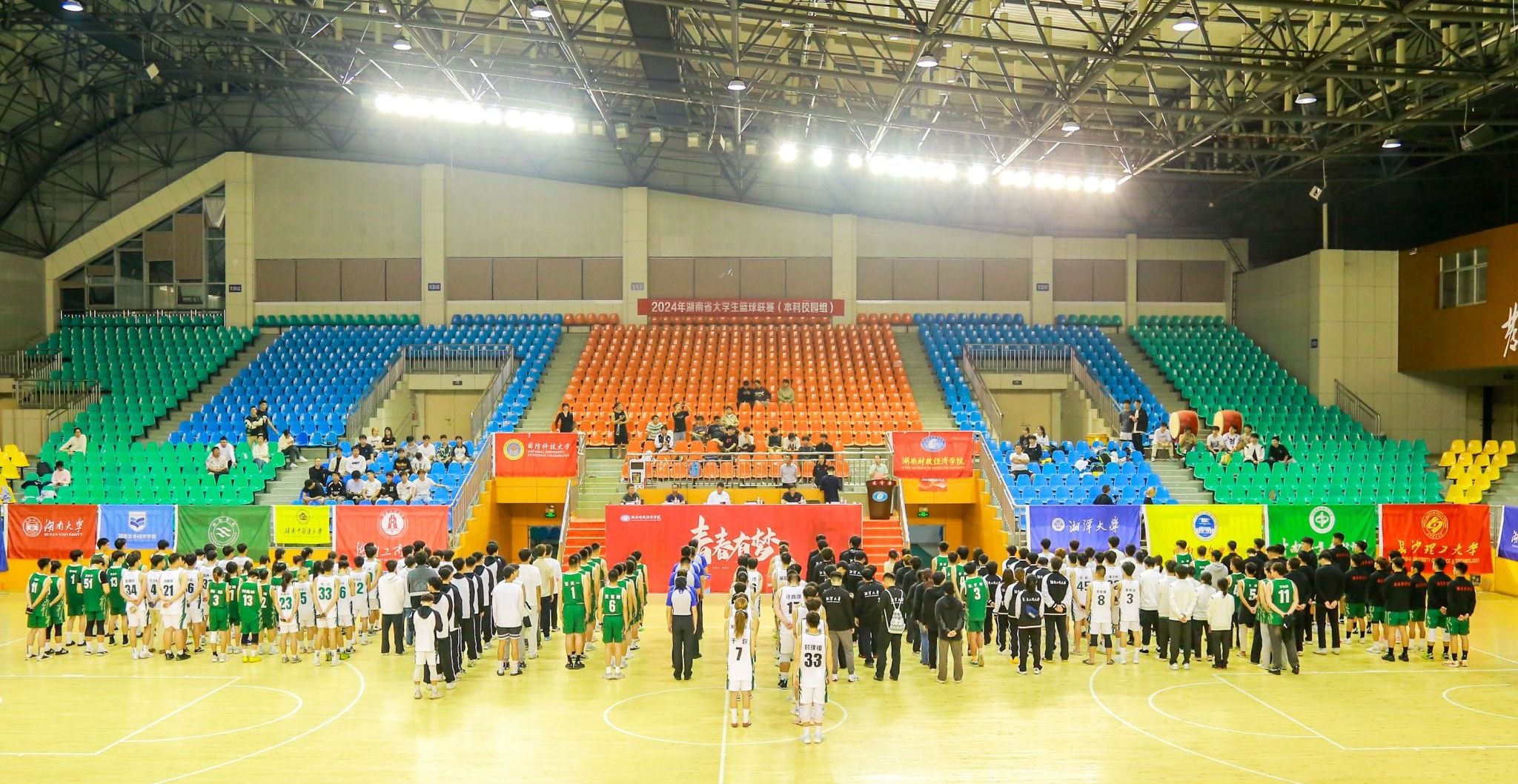 本次联赛由中国学生体育联合会、湖南省教育厅主办,湖南省大学生篮球协会执行,世界杯官网承办,是湖南省高校一项重要的传统品牌体育赛事,也是为高校大学生提供展示体育竞技水平、传递体育精神力量的重要平台。本次赛事吸引了来自全省17所本科高校的16支男子队伍、9支女子队伍共400余人参加。
