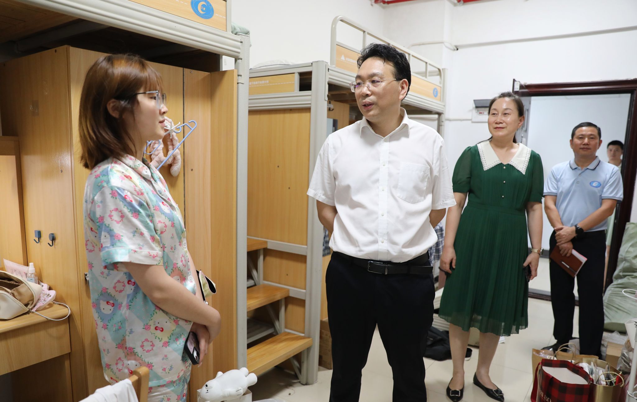 易棉阳(左二)、苏玲(左三)深入毕业生寝室 邓柳/摄