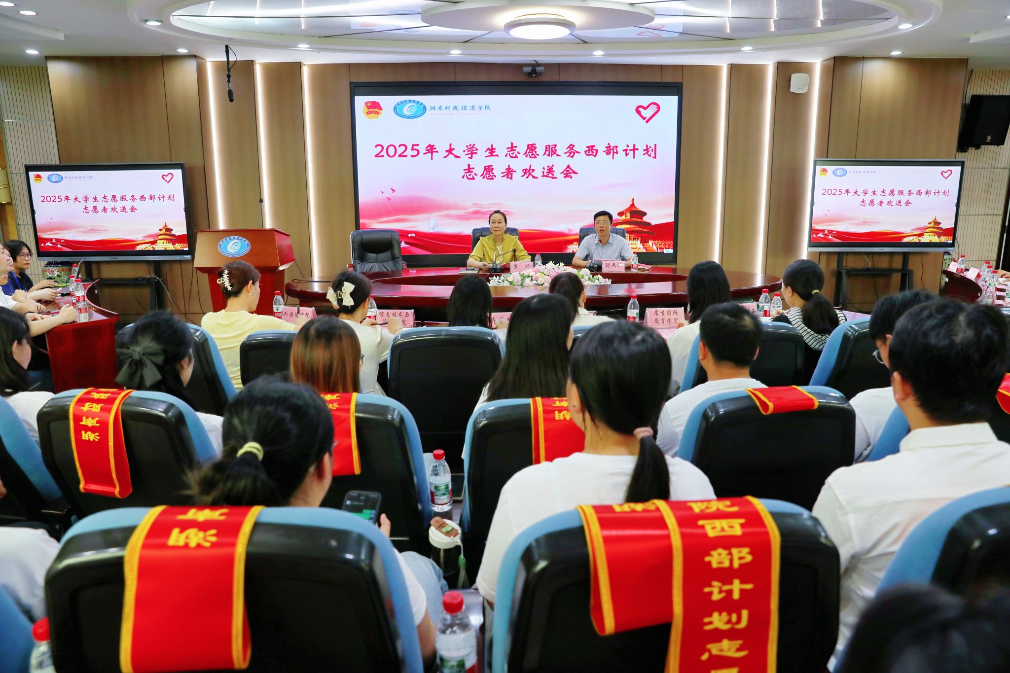 苏玲代表学校向志愿者们致以诚挚问候与衷心祝福,高度赞扬湖财学子胸怀家国、锤炼本领、奋勇拼搏,主动投身祖国最需要地方的精神品质。她向志愿者们提出三点期望:一是牢记使命,在基层建设中实现人生价值;二是脚踏实地,在服务人民中提升综合实力;三是团结奋斗,在平凡工作中展现青春作为。她强调,学校西部计划工作连续多年走在全省前列,离不开往届志愿者的坚持与付出,希望新一批志愿者接过接力棒,挺膺担当,续写华章。