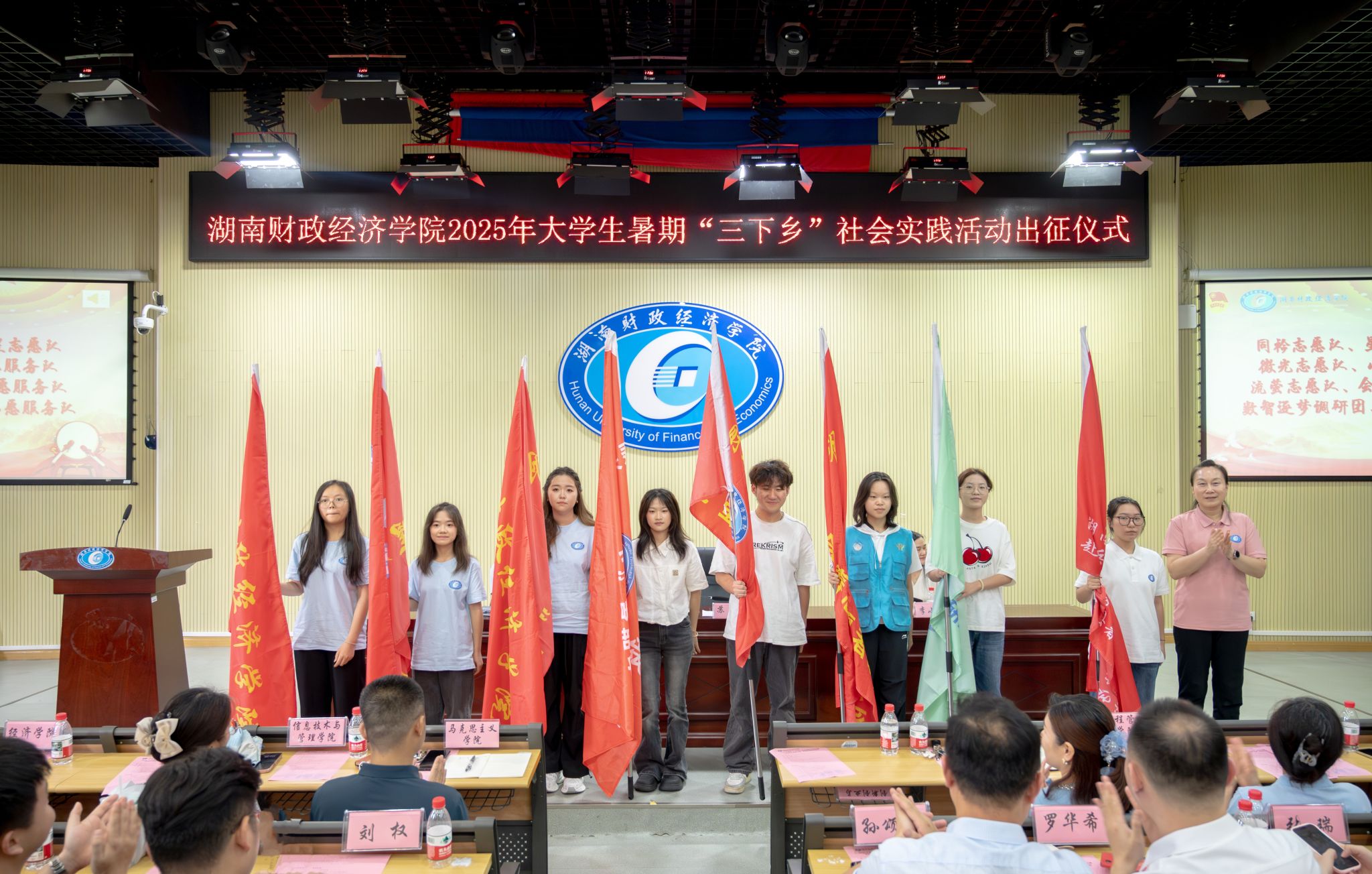 仪式现场,与会领导为24支实践队依次授旗。马克思主义学院直属党支部副书记游志能开展调研报告撰写专题培训,校团委就通讯稿写作进行专项讲解,为实践队后续工作开展夯实基础。