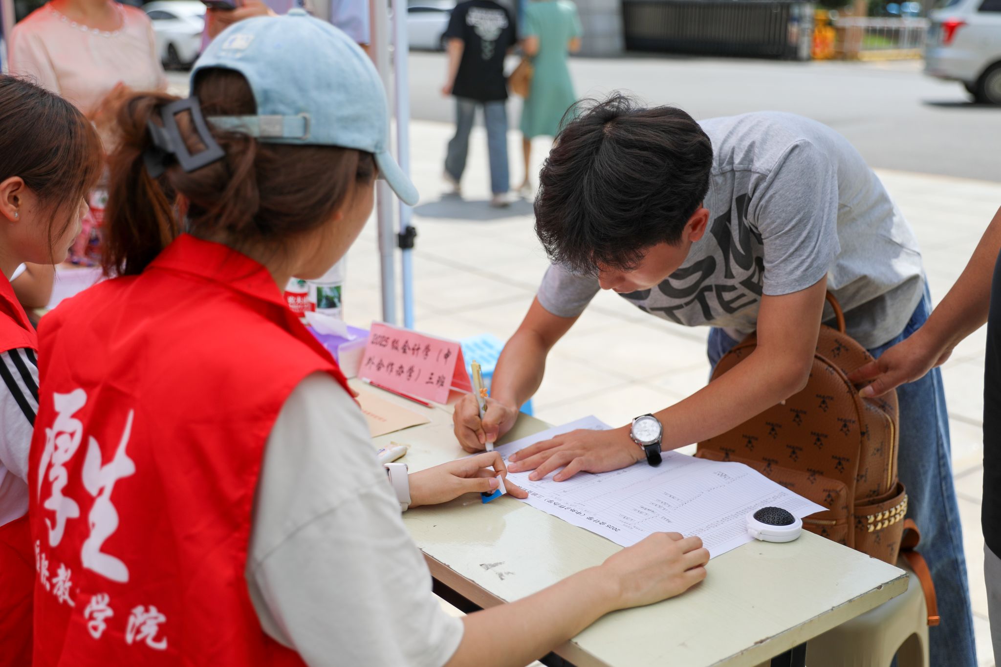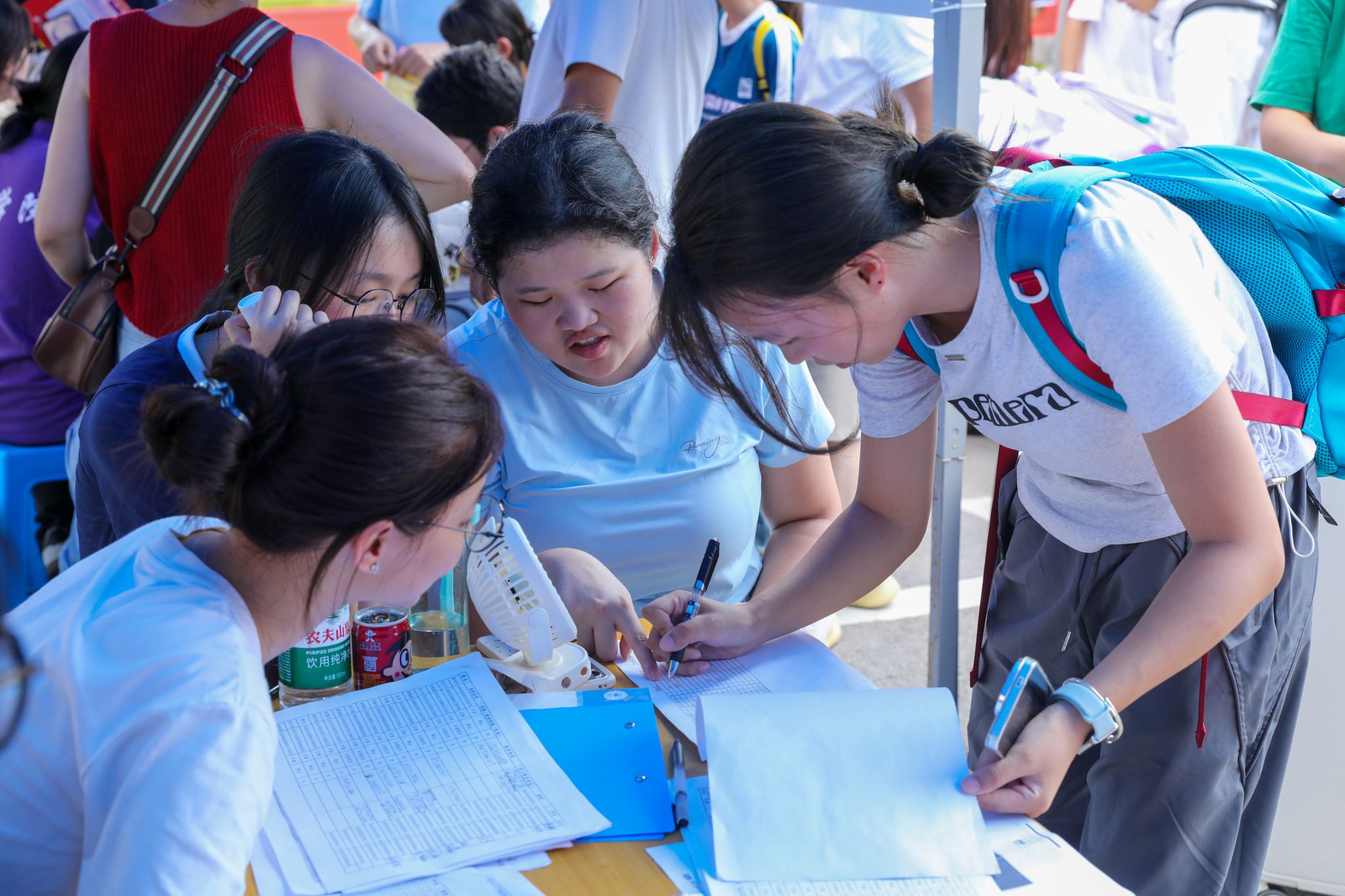校园内,各学院迎新帐篷沿林荫道整齐布置,“正德厚生 经世济用”的校训和“你好!新同学”等标语鲜明醒目。多处创意打卡点搭配趣味相框和互动展板,成为新生及家长驻足留影的热门地。在志愿者引导下,新生们有序完成身份核验、材料提交、校园卡激活及宿舍钥匙领取等流程,并不时驻足咨询课程设置和社团活动,对即将开启的大学生活充满憧憬。