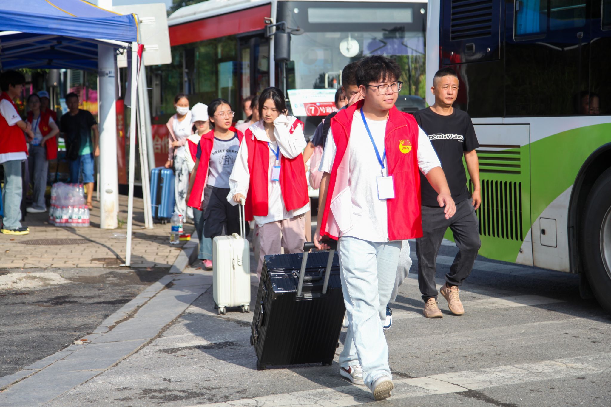 为优化新生体验、提升报到效率,学校提前启动线上智慧迎新系统。新生到校前可完成个人信息填报、费用缴纳、宿舍查询、安全教育及绿色通道申请等流程,大幅简化现场报到环节。同时,学校在机场、火车站、高铁站及汽车站均设接站点,调配30辆转运车循环往返,并组织1000余名志愿者协助新生办理手续、搬运行李,实现从交通枢纽到校园的“一站式”无缝衔接。针对家庭经济困难学生,学校设立“绿色通道”和资助咨询点,发放内含生活必需品的“爱心大礼包”,让新生切实感受到学校的关怀与温暖。