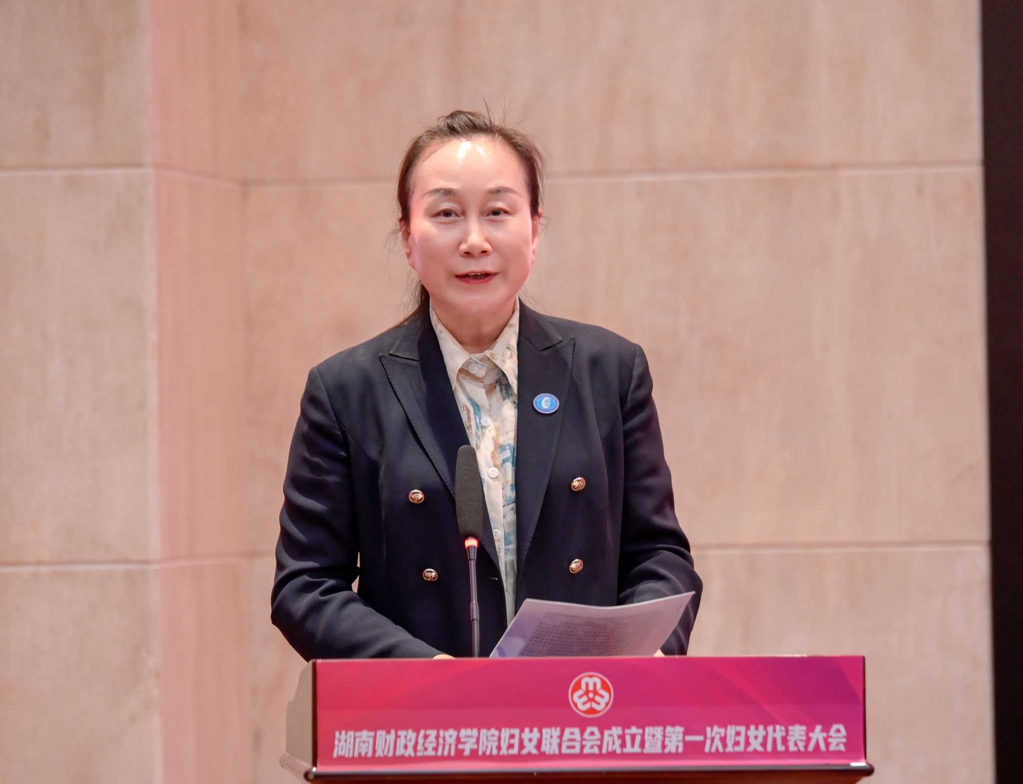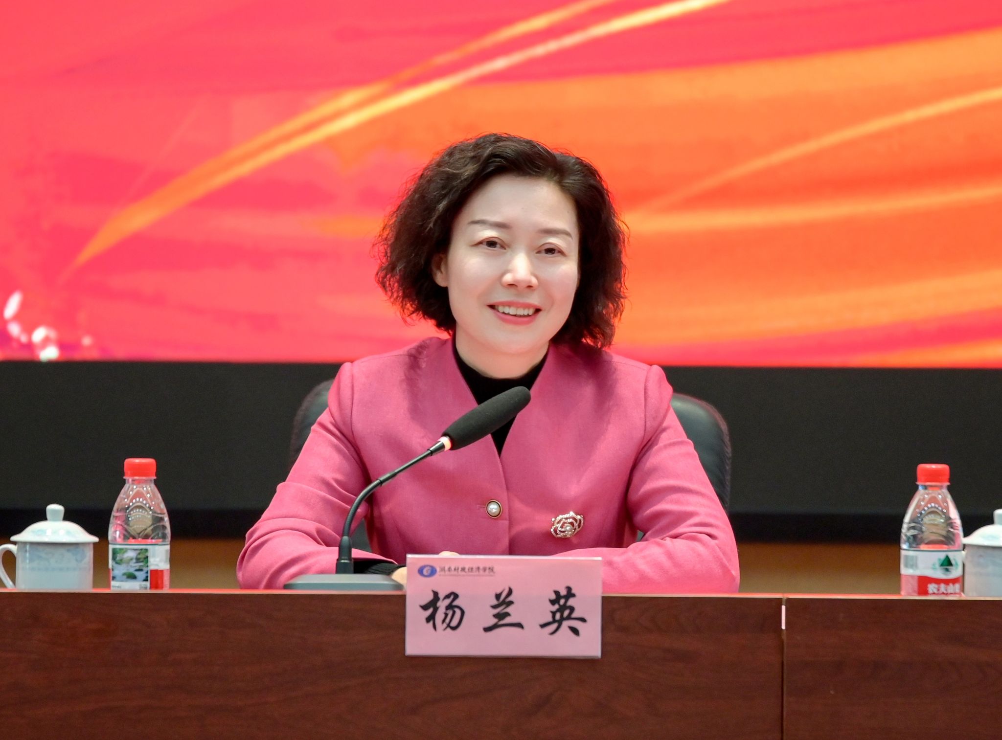 杨兰英代表省妇联向新当选的校妇联领导班子表示祝贺,对学校党委长期以来重视和支持妇女工作表示感谢,并对学校妇女工作给予充分肯定。她介绍了省妇联的重点工作、特色与成效,并就下一步与学校深化合作、协同推进妇联工作提出思路。她强调,学校妇联的成立不仅是“开篇之作”,更要打造为“开山之作”,着力在创新发展妇女事业中贡献“财院之力”、彰显“财院之志”。学校妇联要坚持与党同心,在深化思想引领上展现新担当;勇担时代之责,在服务中心大局上实现新作为;发挥独特作用,在引领文明风尚中彰显新风采;夯实组织基础,在锻造坚强阵地上取得新成效。省妇联将持续为学校妇女工作搭平台、强保障、优服务,助力学校妇女事业发展。