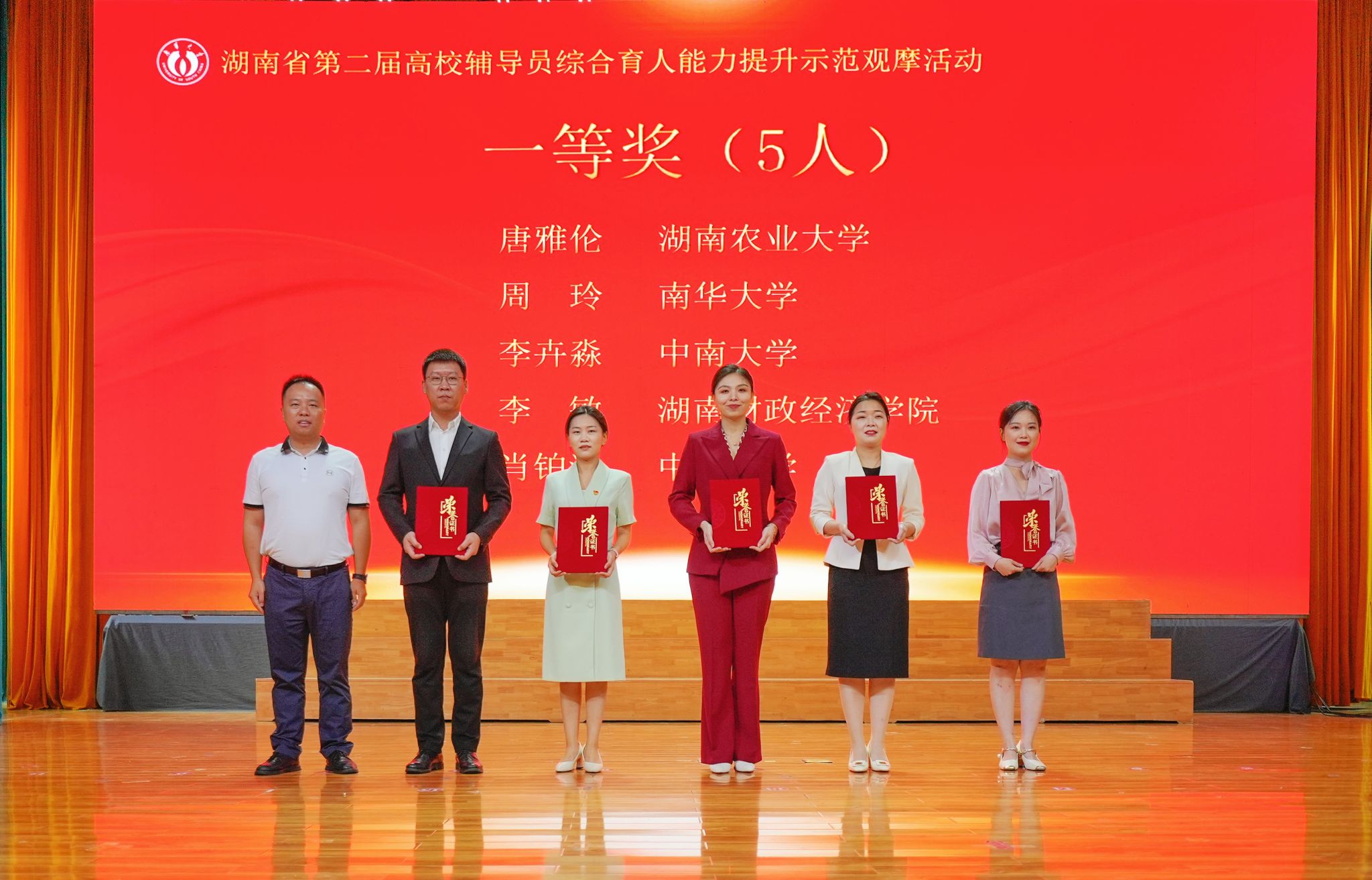 李敏(左三)荣获湖南省第二届高校辅导员综合育人能力提升示范观摩活动一等奖
