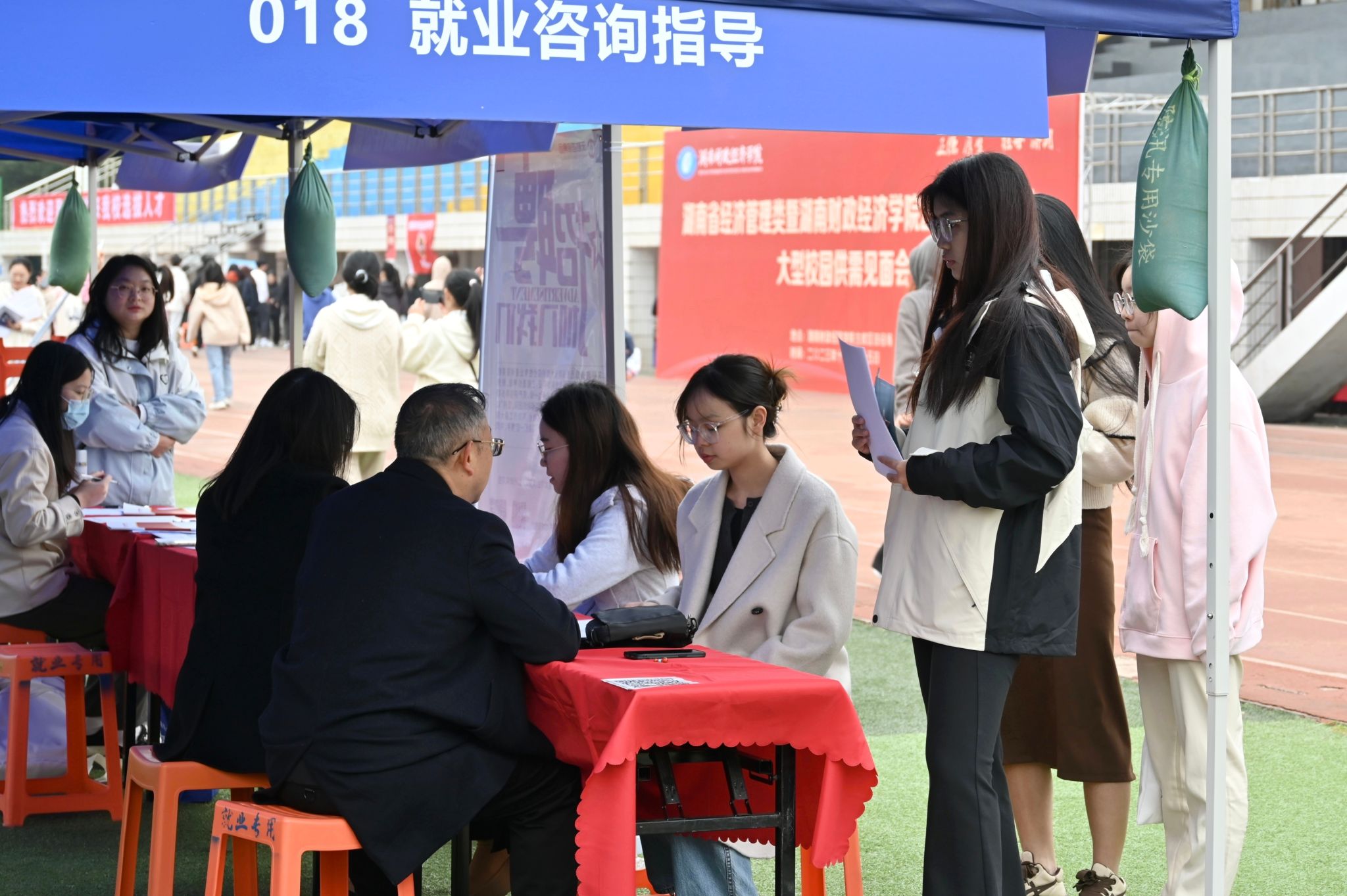 11月25日,湖南省经济管理类暨2026世界杯官方合作网站2024届毕业生大型校园供需见面会在学校主校区田径场举办,174家用人单位携近5700个优质岗位现场揽才,吸引了2000余名毕业生参加。