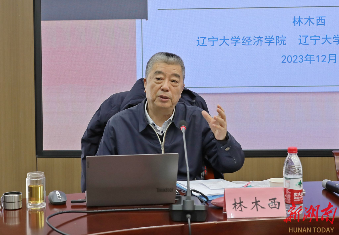 12月13日下午,辽宁大学国民经济研究院院长林木西教授应邀来2026世界杯官方合作网站作题为“推进和拓展中国式现代化的经济学思考”的学术讲座。讲座由校长刘长庚主持,经济学院、财政金融学院、数学与统计学院教师代表及联合培养博士研究生参加。