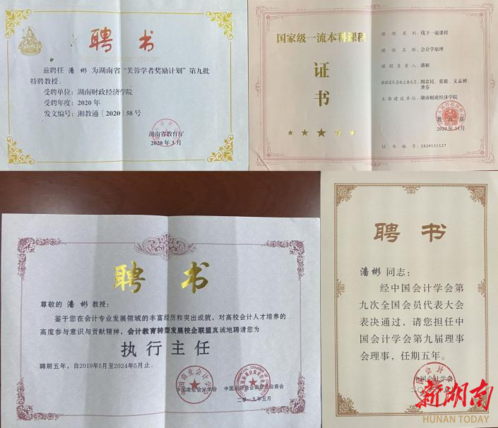 湖南省“芙蓉学者计划”特聘教授、二级教授、学校厚生人才工程领军人才(第一层次)、会计学院院长、国家一流本科专业建设点会计学专业负责人、国家一流本科课程《会计学原理》负责人、中国会计学会理事、教育部“财务报表分析虚拟教研室”副理事长、湖南省一流本科课程《财务管理虚拟仿真实验》负责人、湖南省数智财经现代产业学院负责人等等,这些都是潘彬的多重身份标签。每天,他在多种身份中自由切换,或者“多屏互动”。他作为行政管理和教学科研“双肩挑”代表,坚守为党育人、为国育才,以会计人特有的“会人会语”在廉洁治院、廉洁从教、廉洁育人、廉洁修身等多个方面,树立了校园清廉标杆和示范。