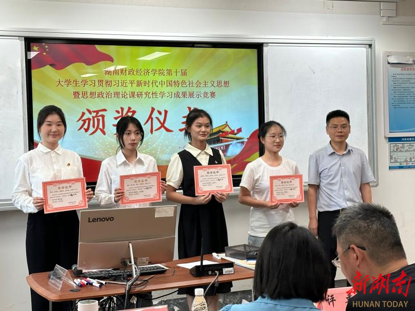 马克思主义学院院长黄建跃、德育系主任罗财喜分别为获得特等奖、一等奖的小组颁发了获奖证书。
