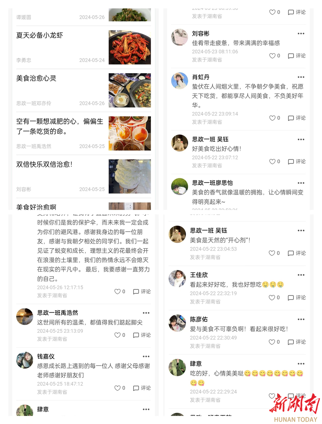 同学们上传美食照片交流感悟