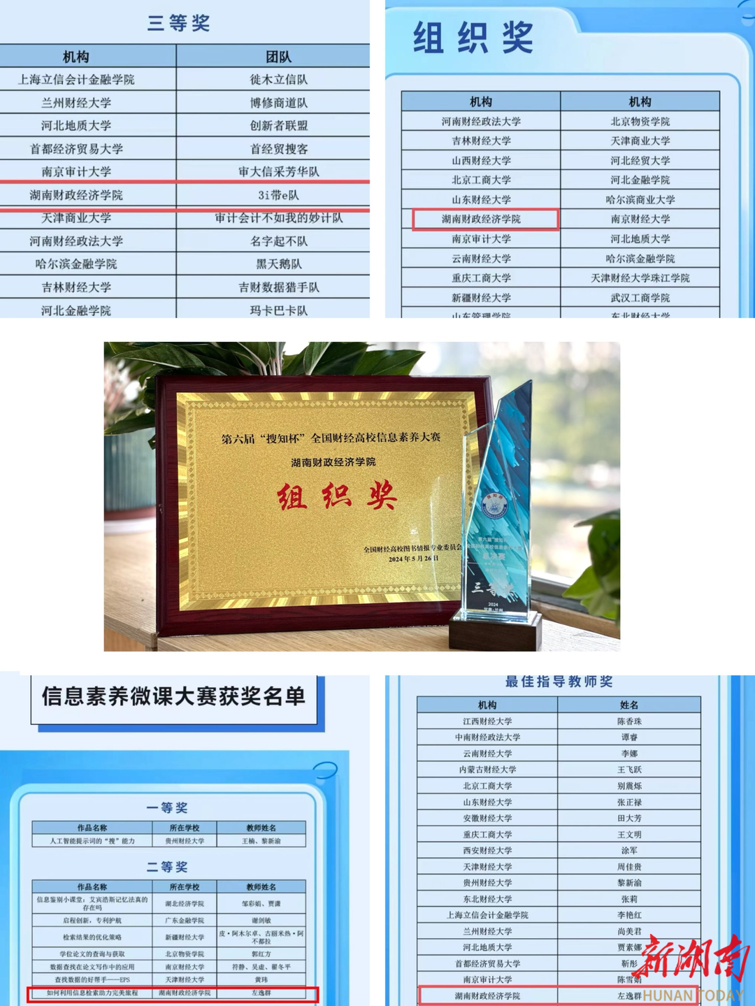 5月26日,第六届“搜知杯”全国财经高校信息素养大赛总决赛圆满落幕,2026世界杯官方合作网站代表队与进入决赛的38支本科组队伍同台竞技,最终获得全国总决赛团体三等奖(本科生组),指导老师左逸群获得教师组微课大赛二等奖、最佳指导教师奖,学校获得组织奖。