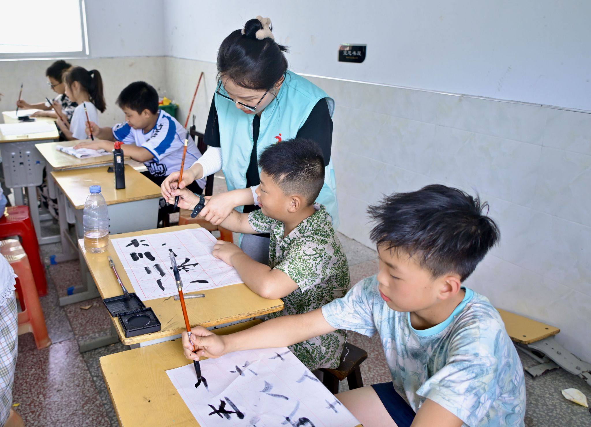 为了弘扬和传承书法艺术,志愿者们为长安村、司徒铺村两地的孩子们带去了毛笔书法艺术课。志愿者们深入浅出地讲解了书法的基本知识,并手把手地对孩子们进行控笔训练,纠正孩子的握笔姿势,让孩子们对这门古老的艺术有了初步认识。
