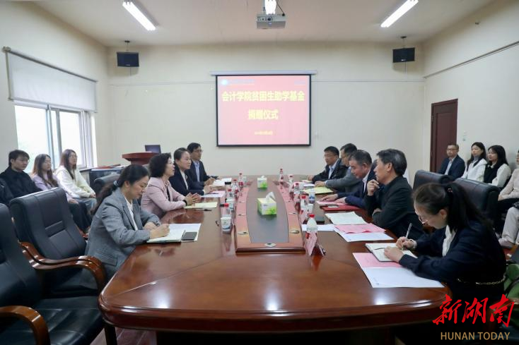 湖南财院党委书记杨兰英、党委副书记苏玲,财务处、就业创业中心(校友联络中心)主要负责人,会计学院领导班子成员及教师代表出席捐赠仪式。