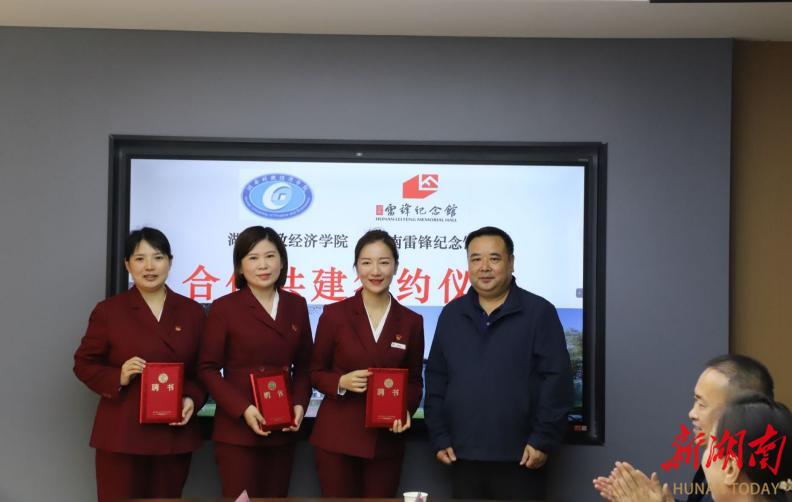 现场,雷锋书院常务副院长杨健代表学校向湖南雷锋纪念馆颁授了“共学共建实践教育基地”牌匾;邹文向学校颁授了“雷锋精神协同研究基地”牌匾;文炳勋为湖南雷锋纪念馆宣讲团成员张璐琪、肖婷、侯佳蕾颁发校外导师聘书。