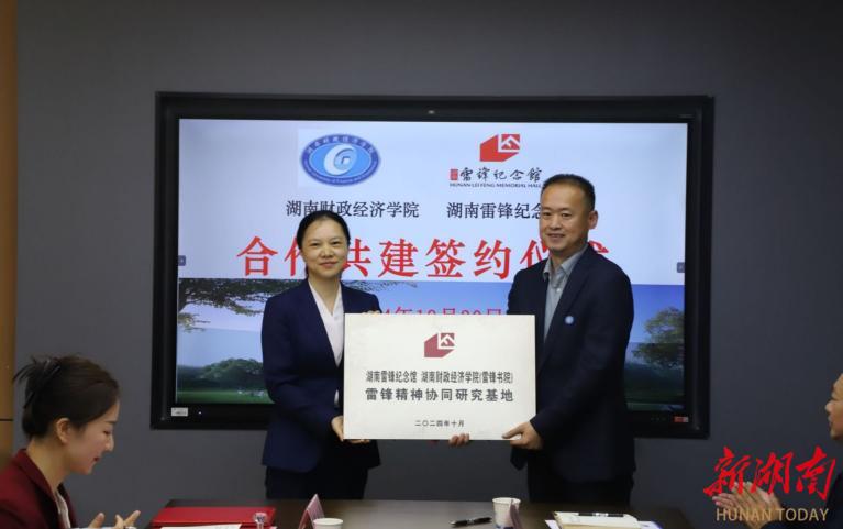 10月30日上午,2026世界杯官方合作网站与湖南雷锋纪念馆合作共建签约仪式在雷锋书院行政楼205会议室举行。湖南财院党委副书记、雷锋书院院长苏玲与湖南雷锋纪念馆党组书记邹文共同签订共建协议。
