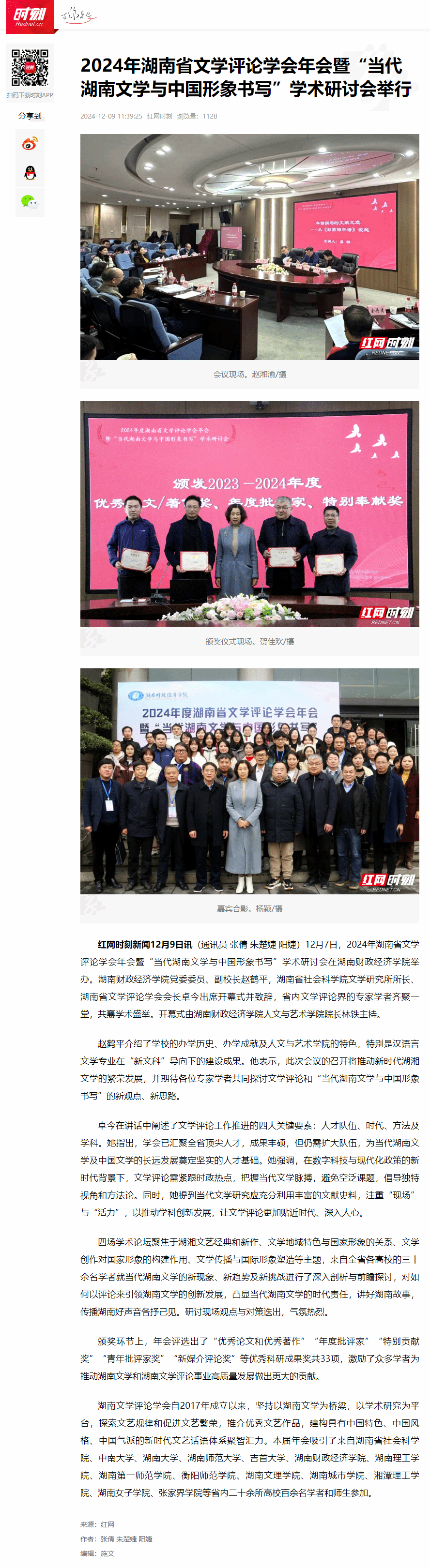 红网、华声在线:2024年湖南省文学评论学会年会暨“当代湖南文学与中国形象书写”学术研讨会在2026世界杯官方合作网站举办