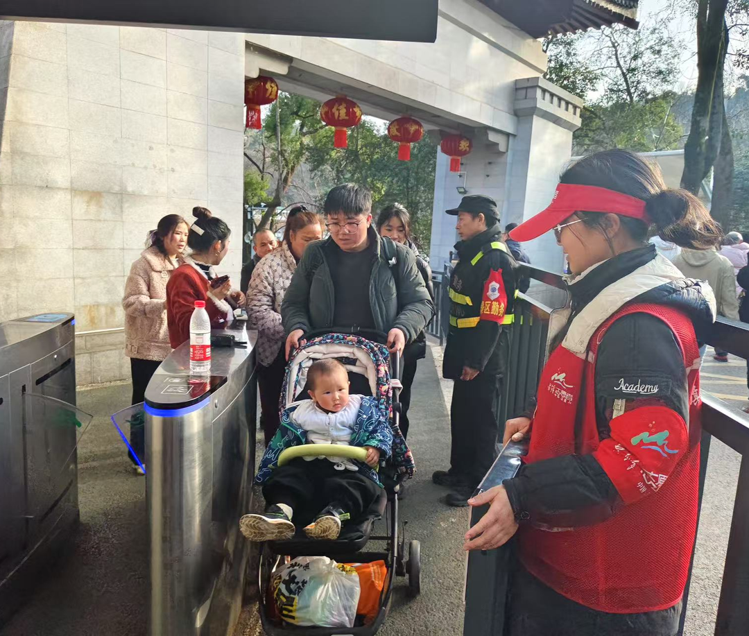 在景区咨询服务台、入园闸机口、观光车排队处等地,随处可见“小青星”青年志愿者服务的身影,从1月28日至2月4日,志愿者们以饱满的精神状态为来长游客提供旅游咨询、行李寄存、交通咨询、文明劝导等“一站式”便捷爱心服务。“请问怎么购买门票?”“景区导览图在哪里领取?”……面对游客们的询问,身穿红马甲的志愿者们热情地解答游客们的问题,一张张亲切笑脸、一声声友情提醒,赢得了游客们的称赞。
