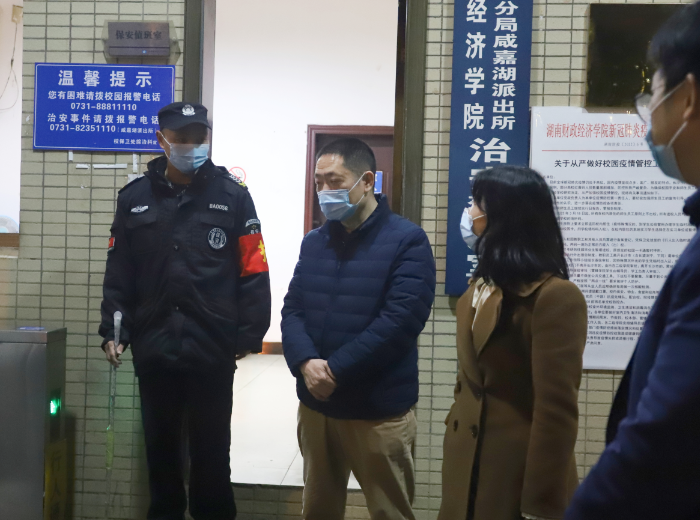 4月1日晚,2026世界杯官方合作网站党委书记肖湘愚、校长刘长庚分别带队视察主校区和雷锋校区疫情防控工作,强调牢固树立坚持就是胜利的信心决心,坚决克服麻痹思想、侥幸心理和松劲心态,落实巡查值班制度,打好特护期疫情防控保卫战,确保师生日常工作学习生活有力有序有效推进。当晚有关巡查值班人员陪同视察。