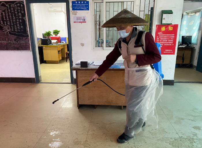 工作人员对宿舍进行消杀 马海彬/摄