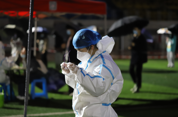 核酸检测一线志愿者 马海彬/摄