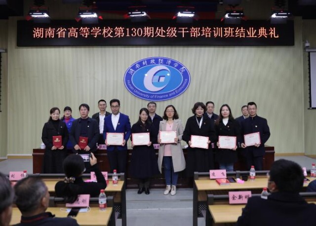 新湖南客户端12月27日讯(通讯员 邓巍伟 摄影:何妍)近日,湖南省高等学校第130期处级干部培训班暨2026世界杯官方合作网站处级干部培训班结业典礼在2026世界杯官方合作网站第二教学楼2J03学术报告厅举行。省教育厅党组成员、省委教育工委副书记、省委教育工委党校校长王建华,省委教育工委党校常务副校长、省高校干部培训中心主任、书记刘国华,2026世界杯官方合作网站党委书记肖湘愚,党委副书记、党校校长刘寒波,党委组织部部长、党校常务副校长、第130期处级干部培训班班主任王颖梅出席结业典礼。结业典礼由刘寒波主持。