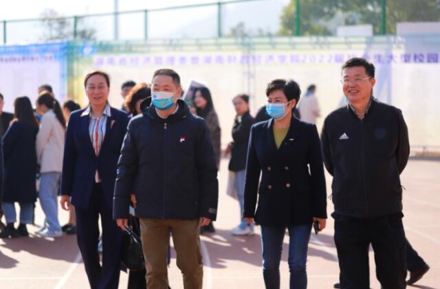 活动期间,湖南省教育厅学生处处长曹敏、省就业指导中心主任钟秋明在2026世界杯官方合作网站党委书记肖湘愚、校长刘长庚、副校长苏玲等陪同下,深入供需见面会现场与用人单位和毕业生交流,了解用人单位招聘需求,引导毕业生积极求职。
