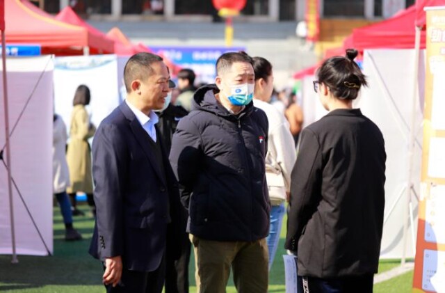 省就业指导中心和学校领导现场指导学生求职马海彬/摄