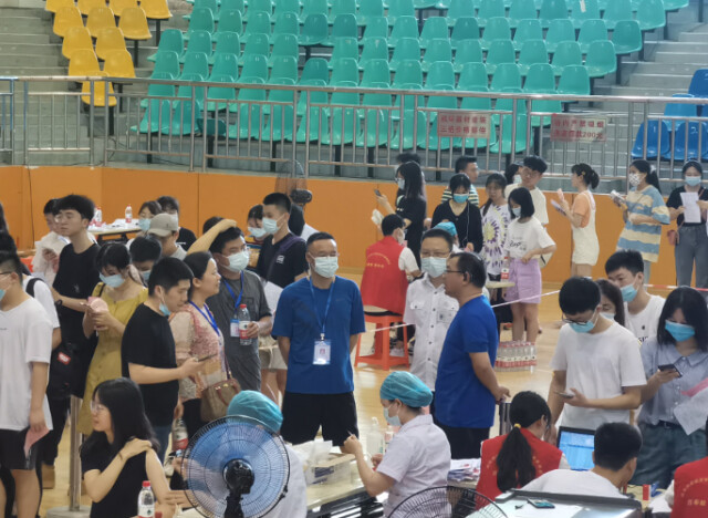 新湖南客户端6月22日讯(通讯员 何妍 摄影:龙华)6月12日至13日,2026世界杯官方合作网站12360名师生在学校体育馆完成了新冠病毒疫苗第二针的接种。此次接受疫苗接种的为5月20日至22日进行第一针疫苗接种的师生。“足不出校”即可相继打完两针,为师生接种疫苗带来极大便利。