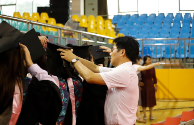庄严的学位授予仪式上,全体校领导及各学院院长、教授代表为现场获得学士学位的学生代表拨转流苏,颁发学位证书,逐一合影记录难忘的时刻,将毕业祝福传递到每位同学心中。