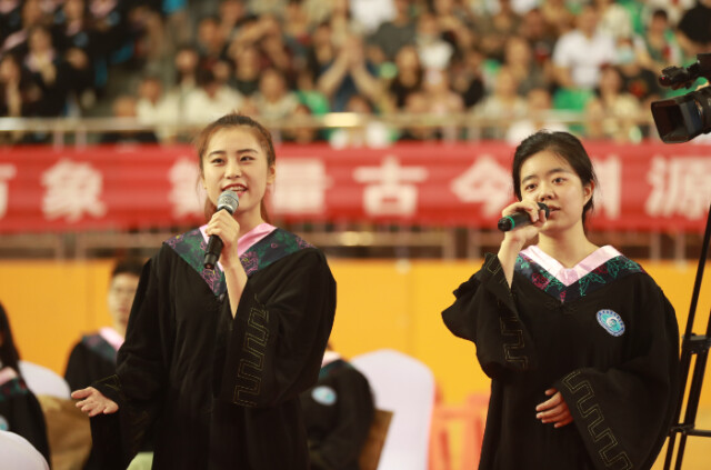 仪式即将开始,观众席中忽然传出阵阵歌声,10名学生用歌曲快闪方式送别毕业生,一首首深情的送别歌曲裹挟着现场师生的离愁别绪荡漾在会场中,给毕业生们留下了最美的毕业回忆。