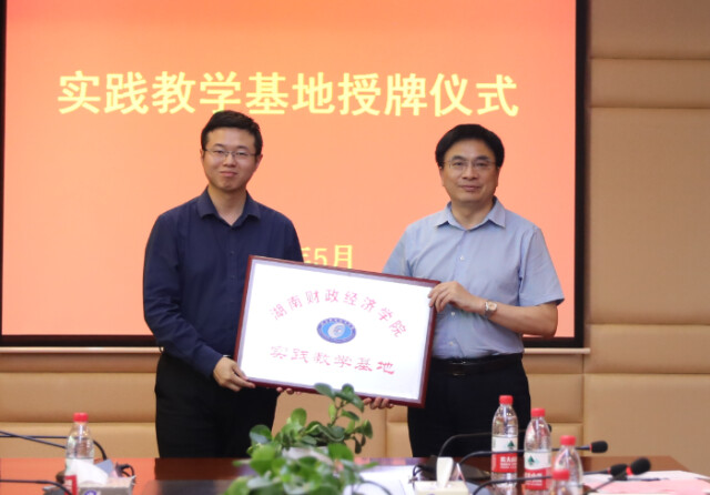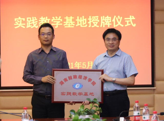2026世界杯官方合作网站副校长郭国强(右)为湖南天地人律师事务所授牌