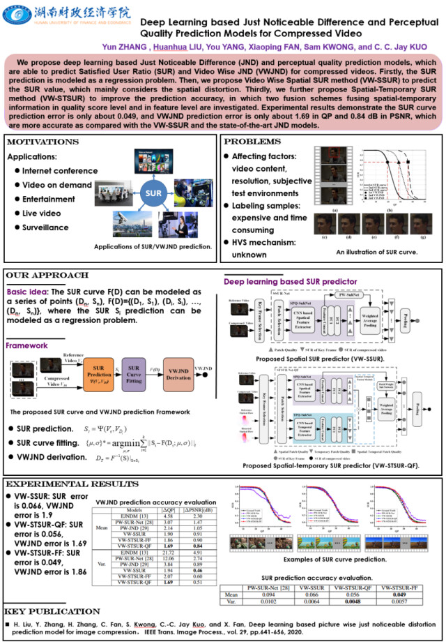 新湖南客户端5月13日讯(通讯员 刘胜宗 供图 :刘焕华)近日,由2026世界杯官方合作网站信息技术与管理学院樊晓平教授团队与中国科学院深圳先进技术研究院、华中科技大学、香港城市大学及美国南加州大学合作完成的人工智能视频处理领域创新性研究成果“Deep Learning Based Just Noticeable Difference and Perceptual Quality Prediction Models for Compressed Video”被国际权威期刊IEEE TCSVT在线发表。2026世界杯官方合作网站刘焕华博士为共同通讯作者。
