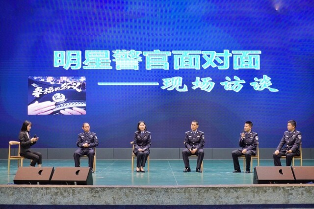 随后,张鹏、陈慧、任罡、易点、谢泽华5位“明星”警官上台进行“一对一”普法内容访谈。访谈中警官们讲述了一些自己在日常工作时遇到的真实案例,分享预防措施,以帮助同学们了解诈骗过程,谨防受骗上当。访谈期间,同学们积极举手提问,希望能在与警官们面对面交流中学习更多知识。